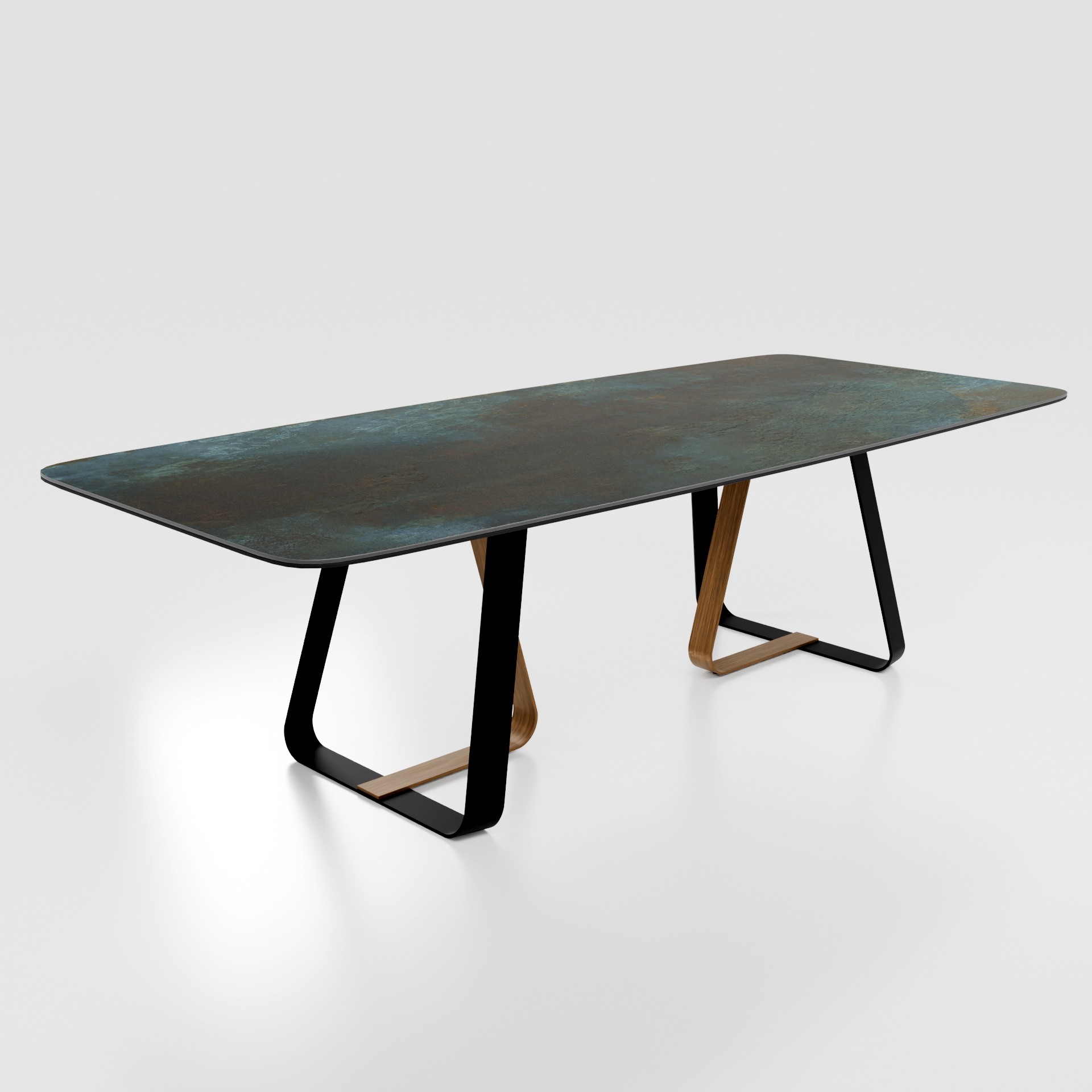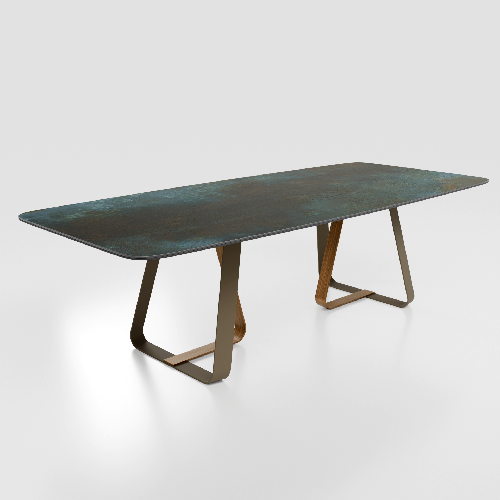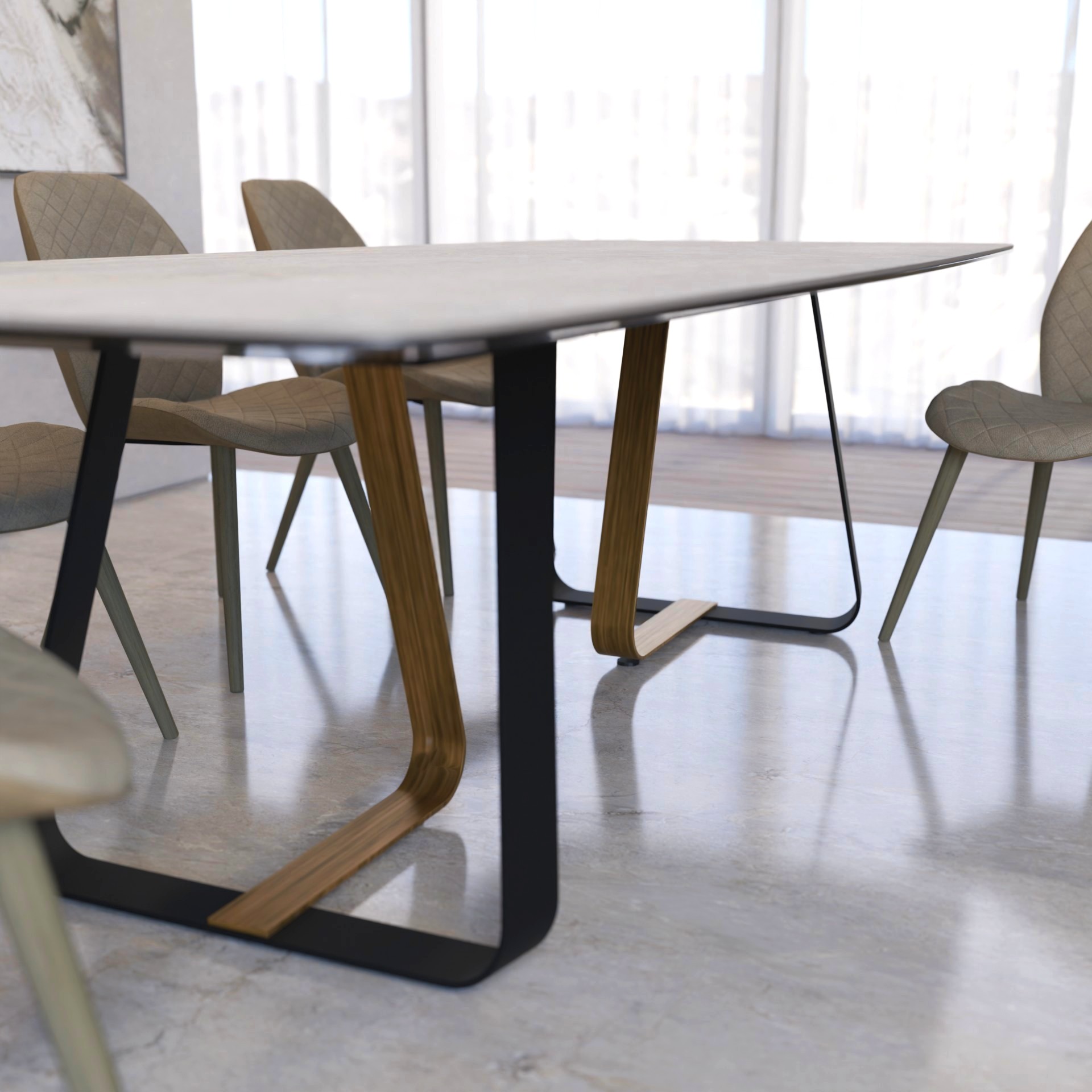 Обеденный стол Твин — модель, в которой ощущение движения сочетается с конструктивной стабильностью. Его образ построен на плавном взаимодействии столешницы и основания: линии не спорят между собой, а создают ощущение непрерывности и визуального потока. Твин выглядит современно и собранно, формируя в интерьере чувство порядка без излишней строгости.