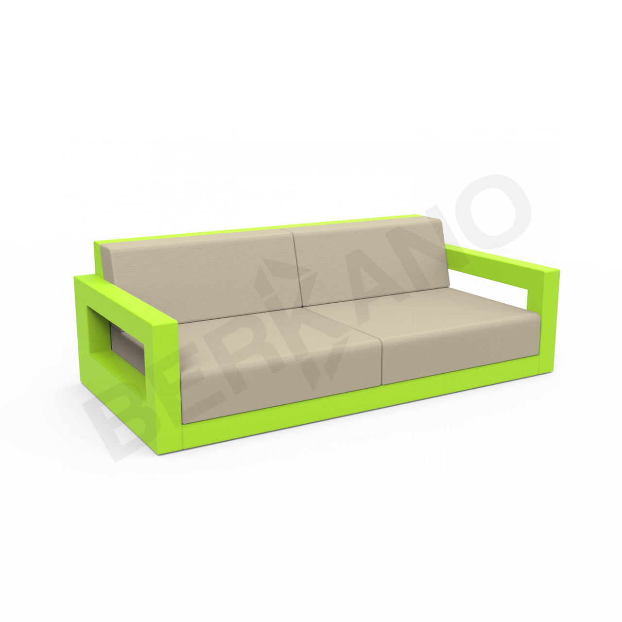 Вымеренные прямоугольные пропорции, присущие коллекции, делают мебель функциональной и эргономичной. Продуманное соотношение сторон предметов гарнитура дает возможность максимально задействовать полезную площадь лаунж зоны. Журнальный столик представлен в двух размерах: с квадратной столешницей и прямоугольной, состоящей из двух квадратных. Кресло и диван с низкой посадкой и мягкими непромокаемыми пуфами служат для максимального комфорта.