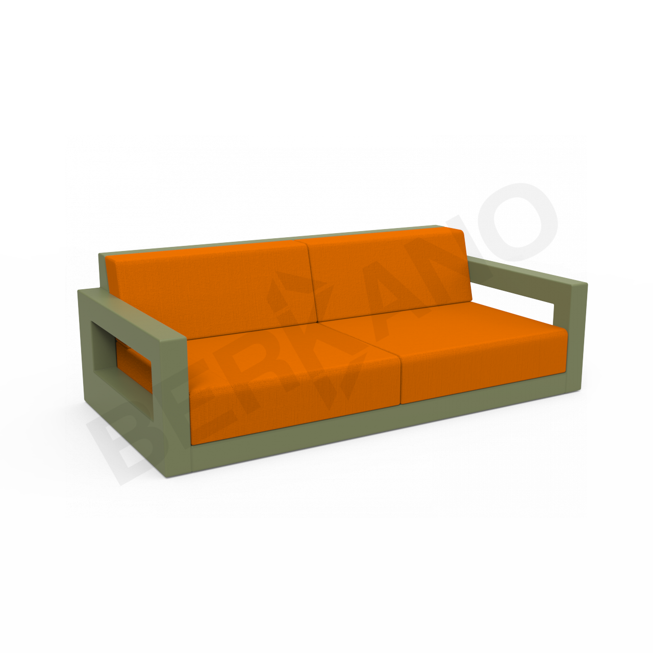 Диван Quarter lounge с подушками темно-зеленого цвета, аксессуар оранжевого цвета