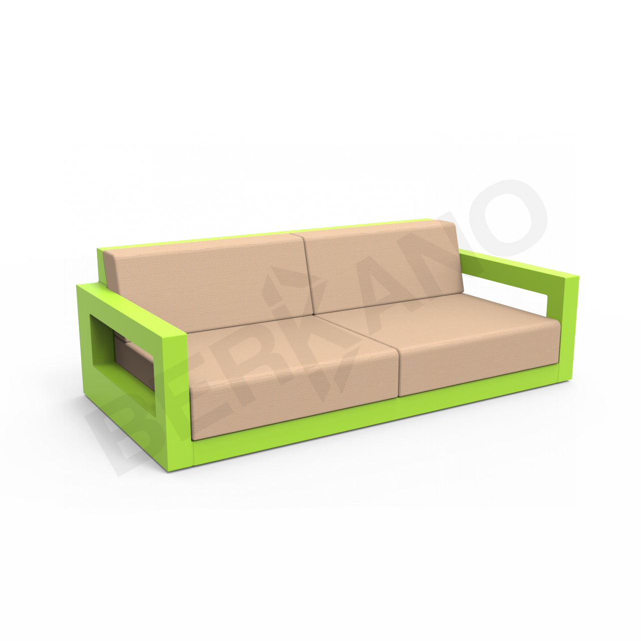 Вымеренные прямоугольные пропорции, присущие коллекции, делают мебель функциональной и эргономичной. Продуманное соотношение сторон предметов гарнитура дает возможность максимально задействовать полезную площадь лаунж зоны. Журнальный столик представлен в двух размерах: с квадратной столешницей и прямоугольной, состоящей из двух квадратных. Кресло и диван с низкой посадкой и мягкими непромокаемыми пуфами служат для максимального комфорта.
