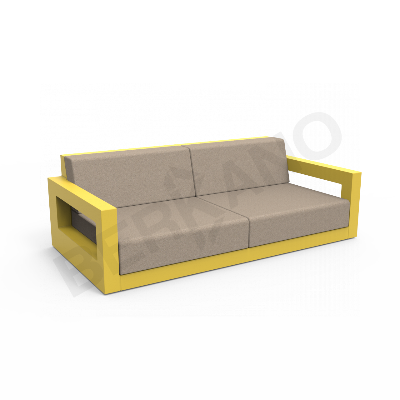 Вымеренные прямоугольные пропорции, присущие коллекции, делают мебель функциональной и эргономичной. Продуманное соотношение сторон предметов гарнитура дает возможность максимально задействовать полезную площадь лаунж зоны. Журнальный столик представлен в двух размерах: с квадратной столешницей и прямоугольной, состоящей из двух квадратных. Кресло и диван с низкой посадкой и мягкими непромокаемыми пуфами служат для максимального комфорта.