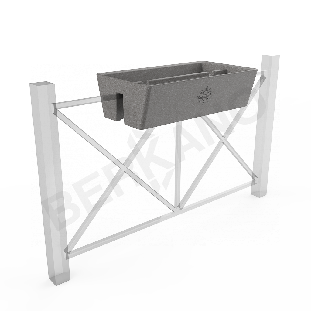 Конструкция предназначена для эстетического облагораживания дорожных ограждений городской среды, для посадки цветов и закрепления на дорожных ограждениях. Кашпо имеет двойное дно, благодаря которому оно может сохранять необходимое количество воды для подпитки растений в засушливую погоду. Конструкция поставляется с двумя креплениями из стали, окрашенными в черный цвет. Конструкция крепится на дорожное ограждение путем нанизывания на два заранее установленные на ограждении крепления. Крепление устанавливается путем механического монтажа без использования специнструмента, что позволяет надежно зафиксировать кашпо на ограждении и сохранить целостность дорожного ограждения после его демонтажа. На внешней поверхности конструкции нанесен рисунок согласно дизайну Заказчика методом ротационного формования. Количество рисунков 2 шт, расположение по центру длинной стороны вазона по обе стороны вазона.