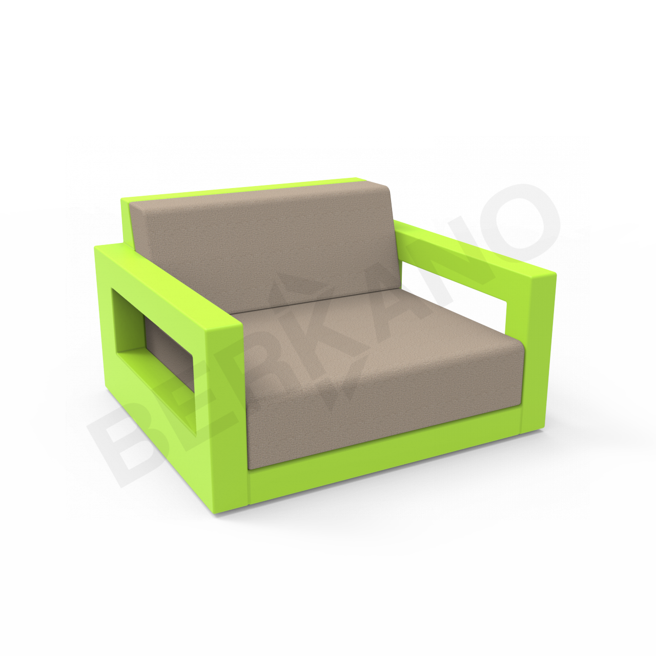 Кресло Quarter lounge с подушками зеленого цвета, аксессуар молочного цвета