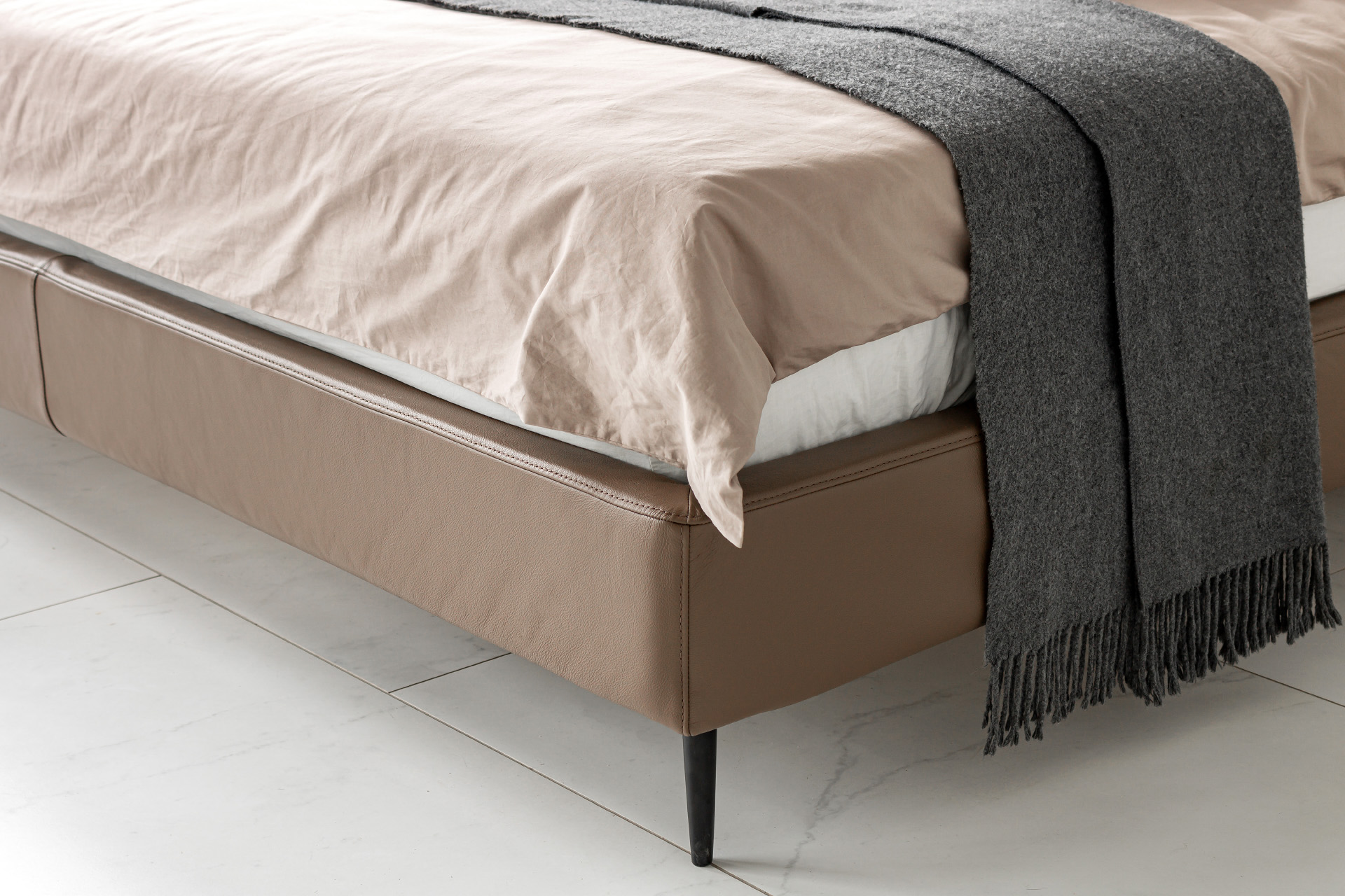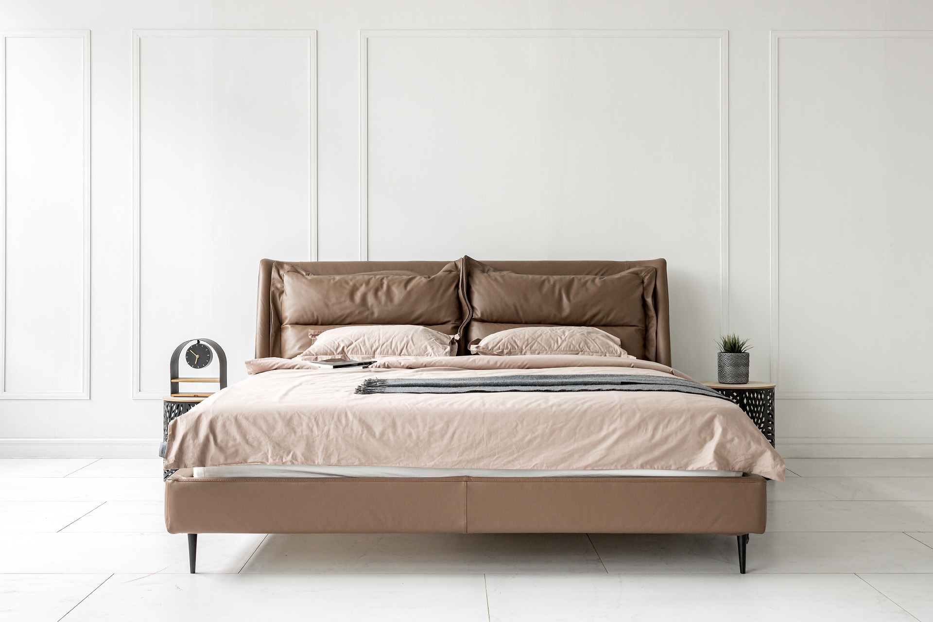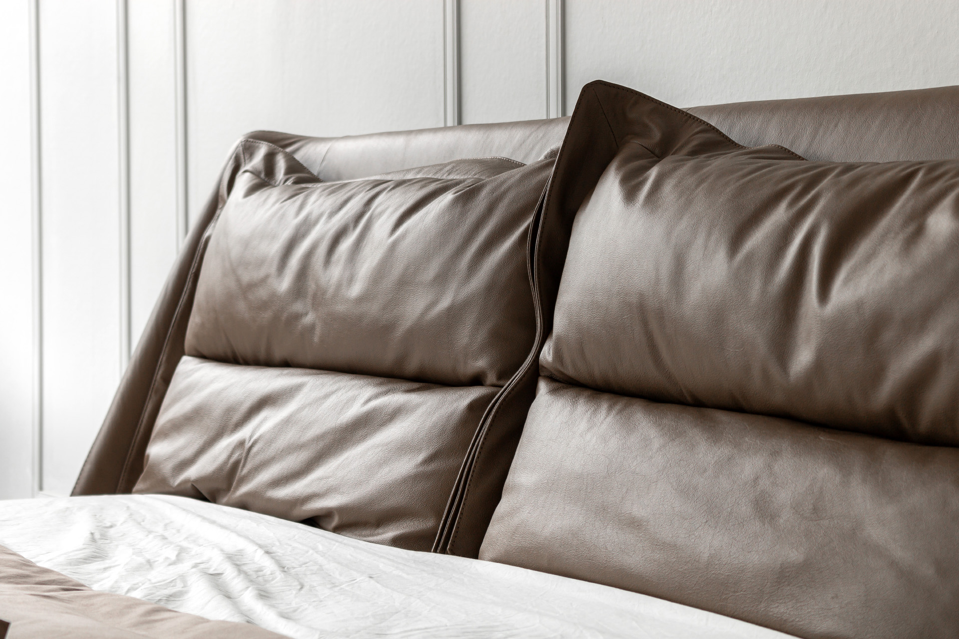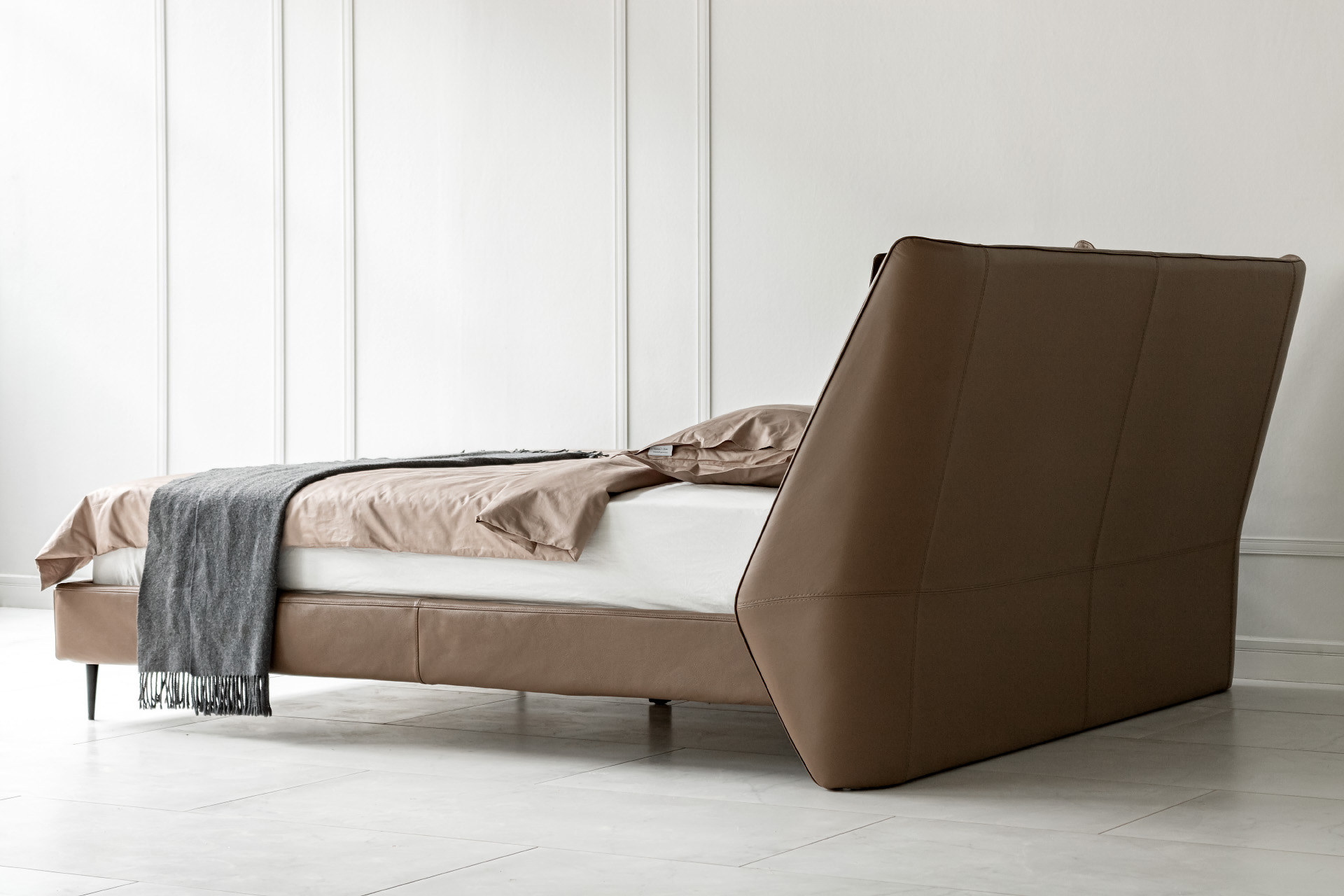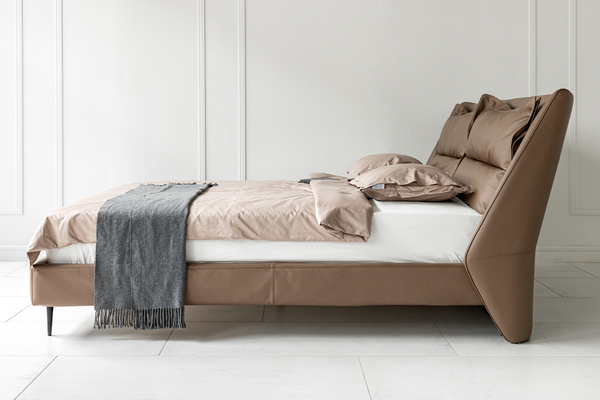 Элегантные формы, плавные переходы между деталями и отсутствие острых углов подчёркивают утончённость образа кровати. Продуманный наклон изголовья и декоративные подушки в комплекте позволяют с комфортом разместиться для чтения книги или просмотра любимого фильма перед сном.