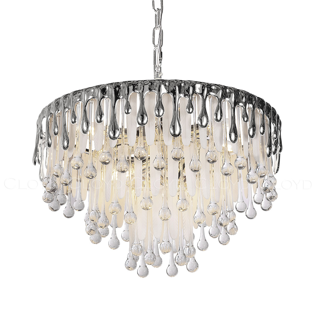 Люстра подвесная Cloyd CAPULETTI (Клойд Капулетти) C9 / арт.11299, ø: 49 см. высота: 40 см (подвес в комплекте - до 50 см), источник света: E14 х 9 шт, цвет металла - хром блестящий. Особенности: керамика высокого качества.Гарантия: 1 год.