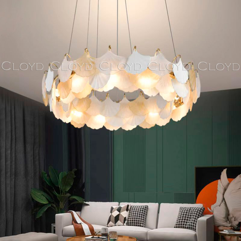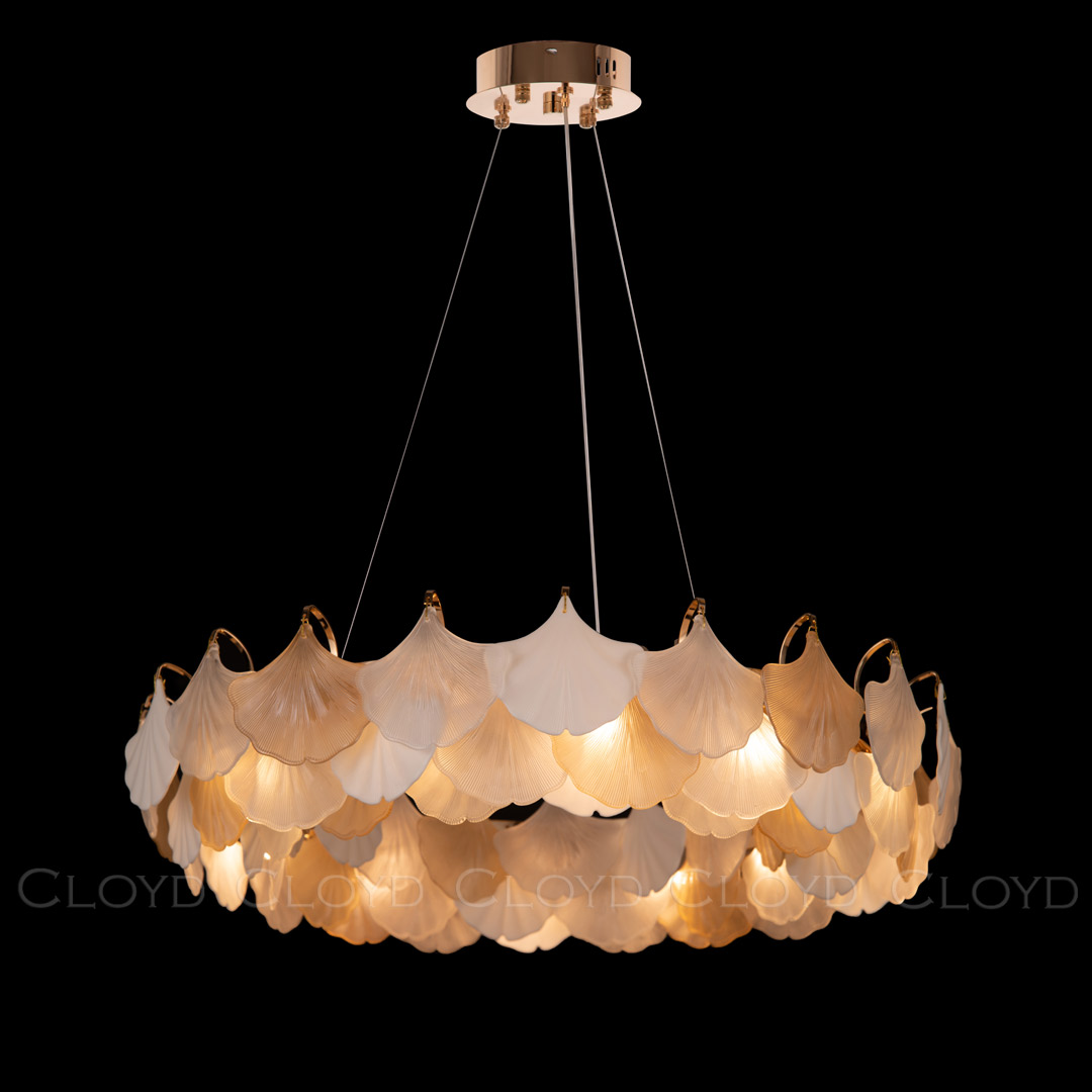 Люстра подвесная Cloyd POLYNESIA (Клойд Полинезия) C12 / арт.10352, ø: 59 см. высота: 40 см, источник света: G9 х 12 шт, цвет металла - золото блестящее. Особенности: керамика высокого качества.Гарантия: 1 год.