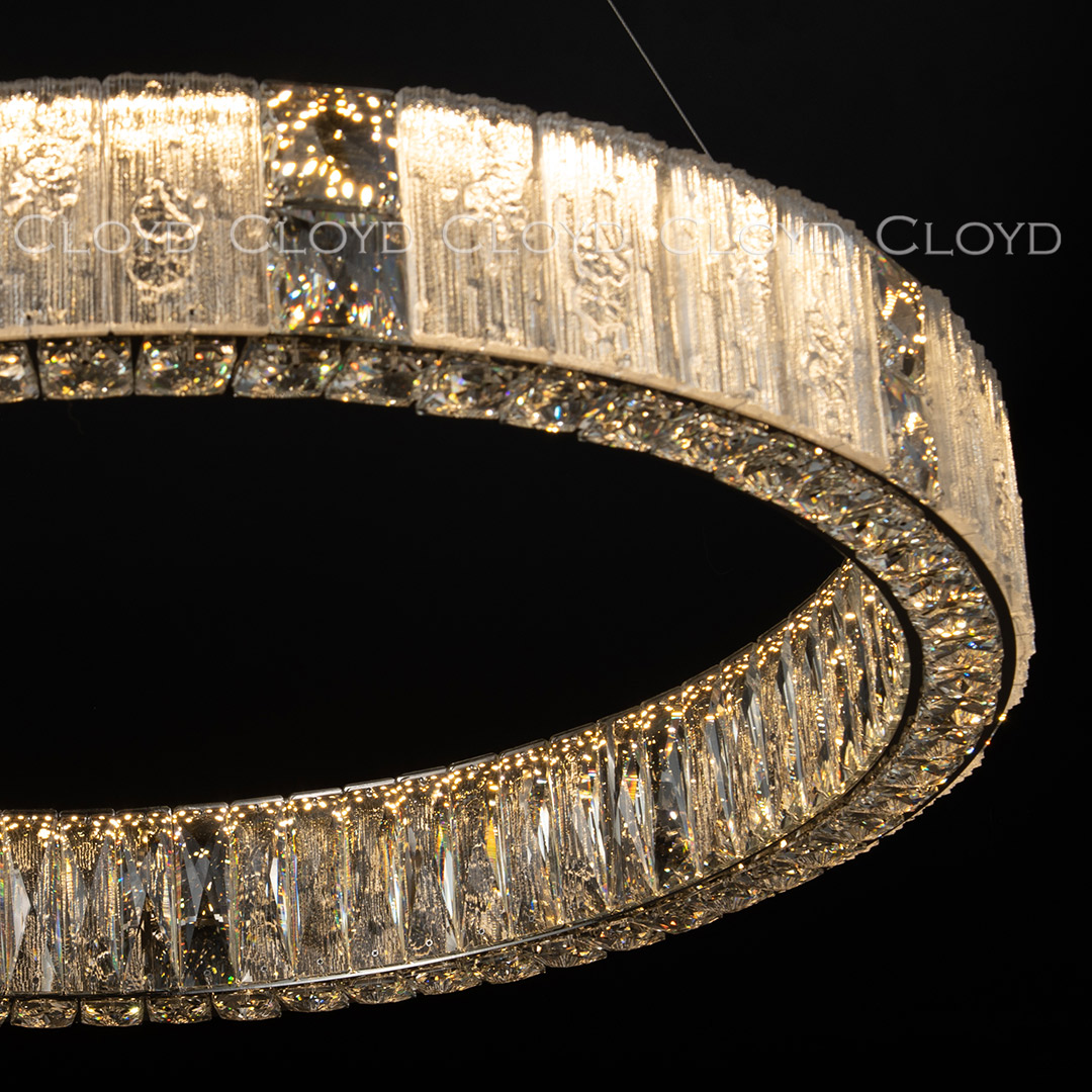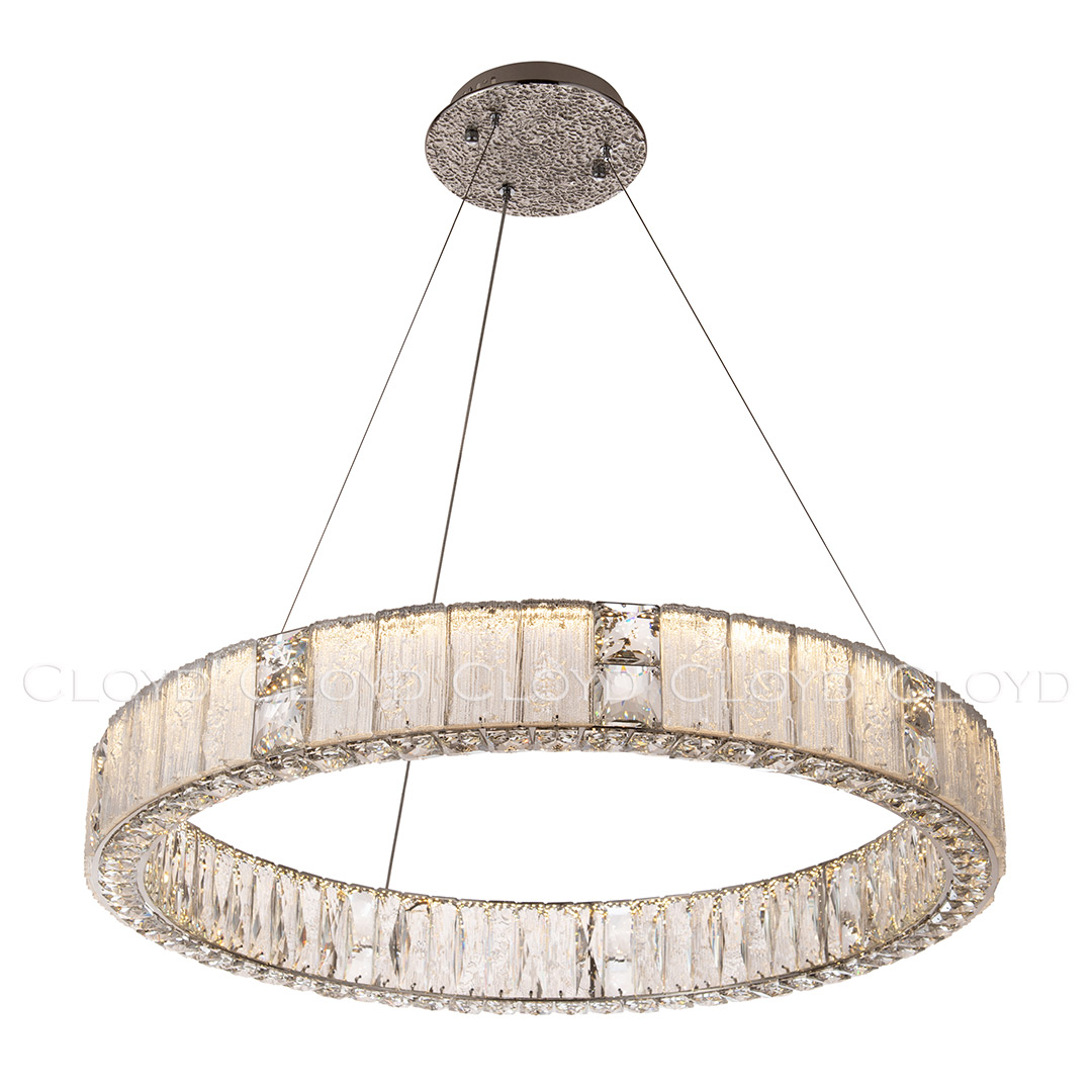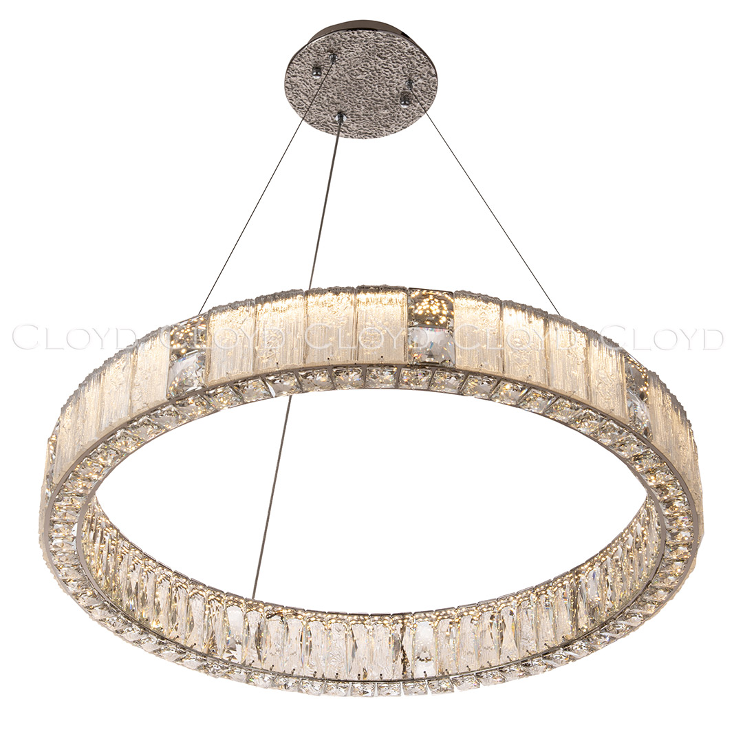 Люстра подвесная Cloyd RADIANTA (Клойд Радианта) C1 / арт.11259, ø: 80 см. высота: 11 см (подвес в комплекте - до 130 см), источник света: LED 100 Вт (3000 К, теплый свет), цвет металла - никель полированный. Особенности: хрусталь К9.Гарантия: 1 год.