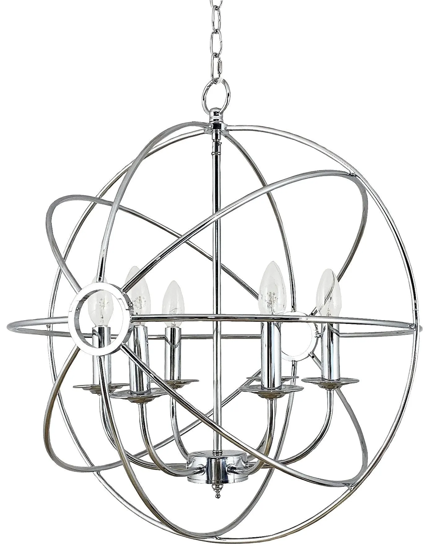 Длина цепи : 15 см. Длина провода: 25 см. Количество ламп: 6шт. Тип цоколя: Е14 . Мощность лампы: 60W. Общая мощность : 360W