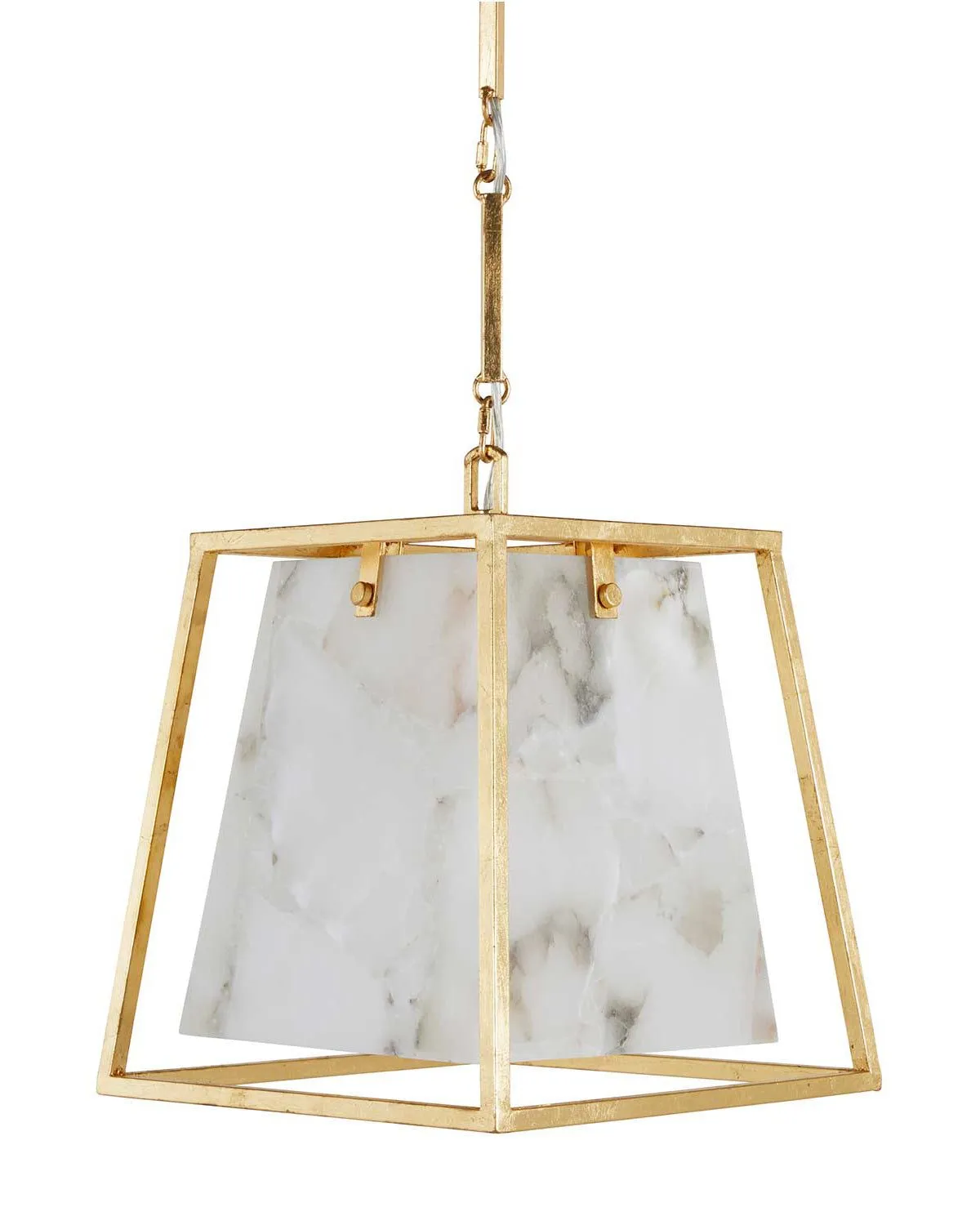 Материал алебастр из которого состоит люстра "Линдон", подчеркнуты в металлической трапециевидной клетке с изысканной отделкой золотого цвета. Материал, который использован для этого подвесного светильника будут иметь всегда уникальные узоры, и добавлять неповторимый стиль.