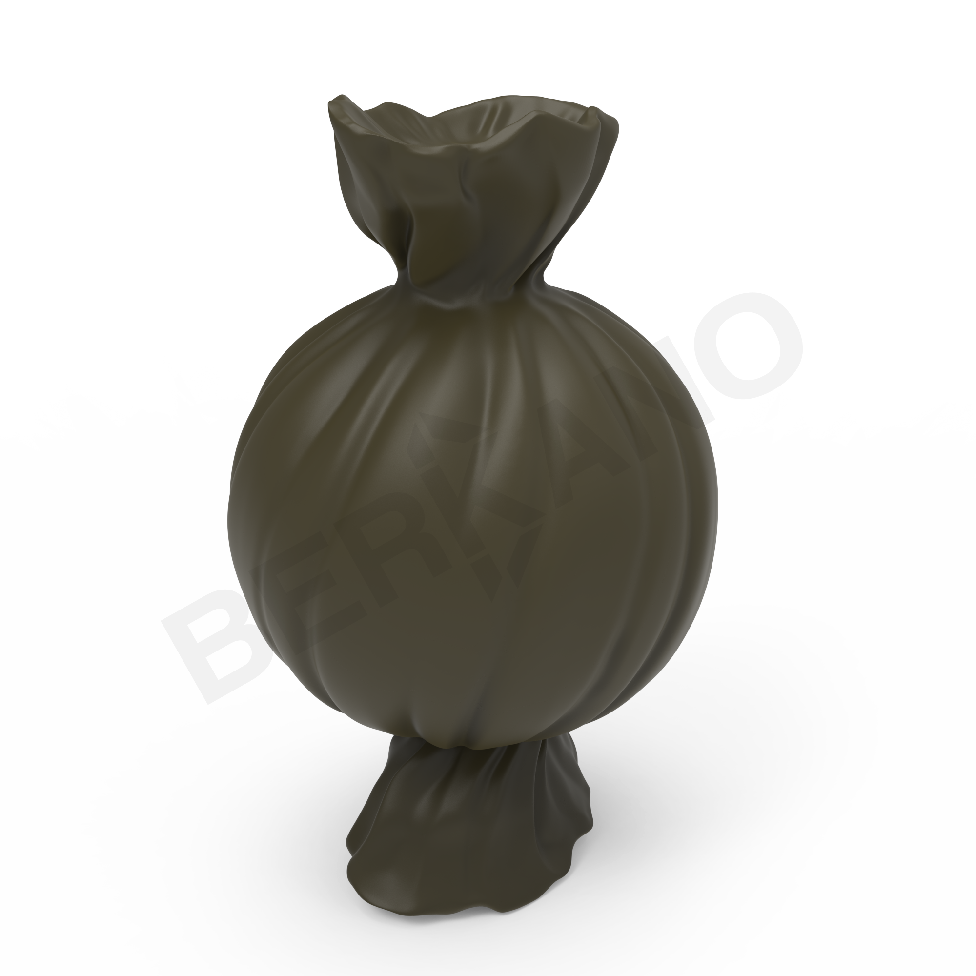 CANDY ROUND — это объёмная конфета, «завёрнутая» в скрученную обёртку, выполненная из белого матового пластика с плавными изогнутыми линиями. Центральная часть конфеты - крупная, почти сферическая, с выразительными продольными рельефами. Эти волнообразные полосы придают телу конфеты динамику, делают её визуально «вкусной» и насыщенной.