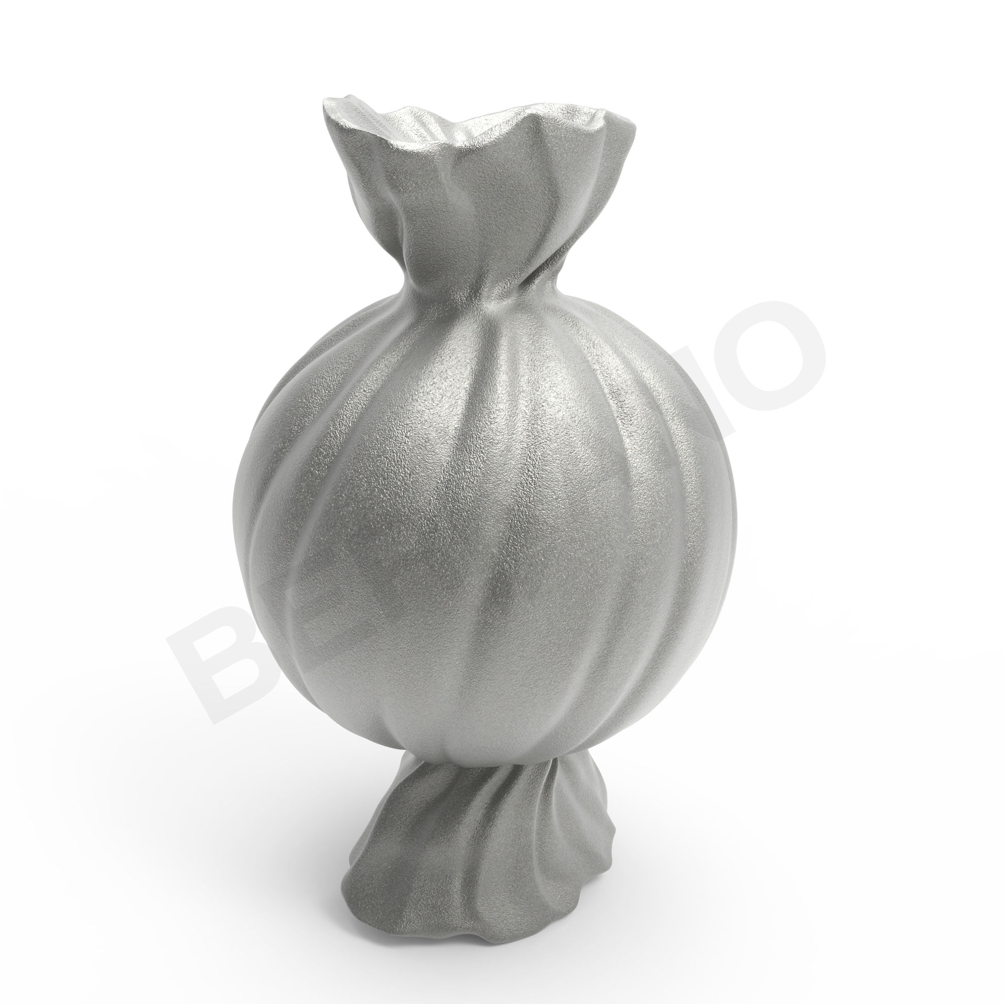CANDY ROUND — это объёмная конфета, «завёрнутая» в скрученную обёртку, выполненная из белого матового пластика с плавными изогнутыми линиями. Центральная часть конфеты - крупная, почти сферическая, с выразительными продольными рельефами. Эти волнообразные полосы придают телу конфеты динамику, делают её визуально «вкусной» и насыщенной.
