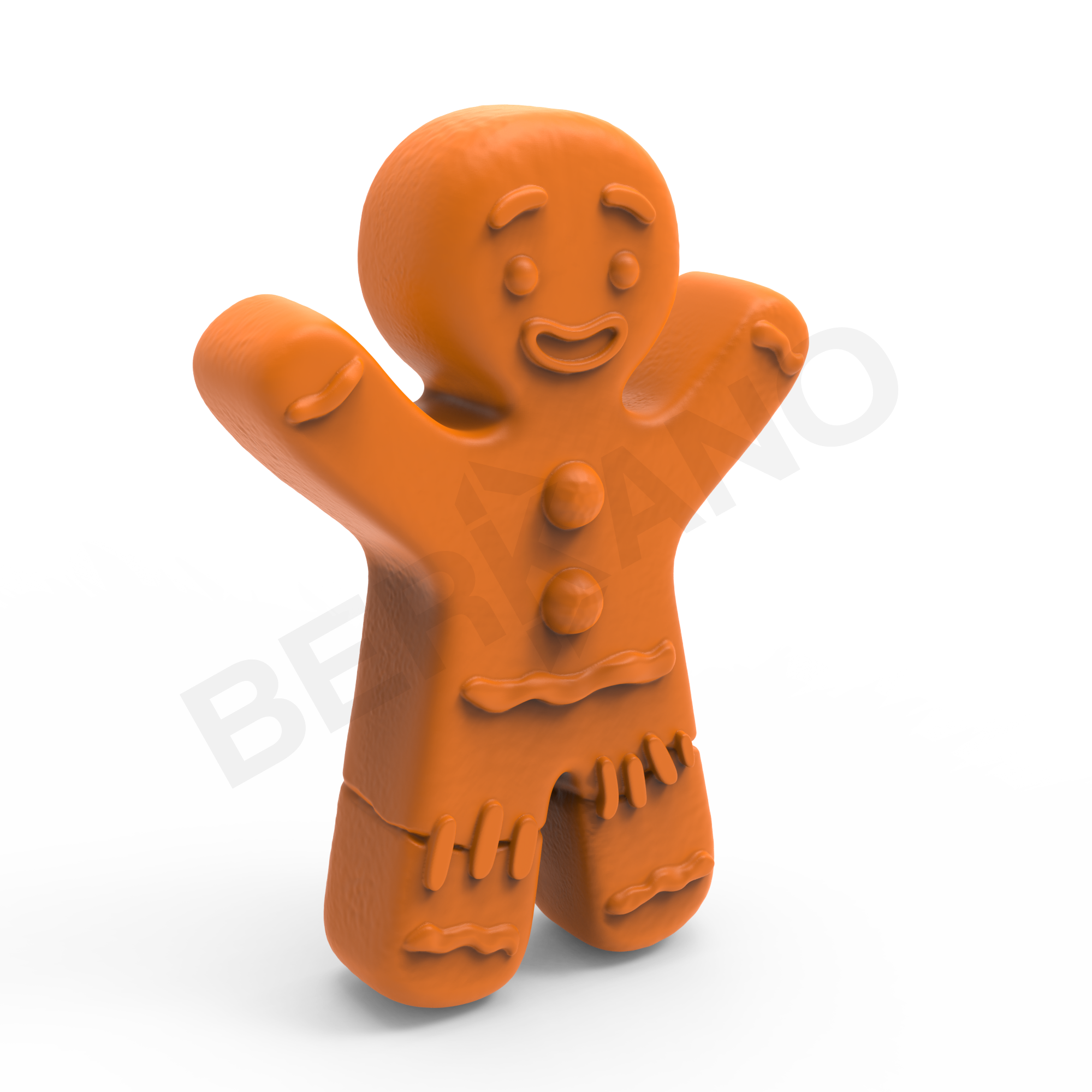 Фигура выполнена в форме классического пряничного человечка с симметричным, слегка округлым силуэтом. Весёлый и узнаваемый символ зимнего праздника. Это не просто декоративная фигура, а настоящий герой новогоднего настроения. Силуэт цельный, слегка вытянутый, с плавными изгибами рук и ног. Все пропорции тщательно выверены - Crumble выглядит дружелюбно и сбалансировано. На поверхности нанесён рельеф: глазурные узоры на руках и ногах, контурный рот и брови, две крупные пуговицы и полоска “глазури” на поясе.