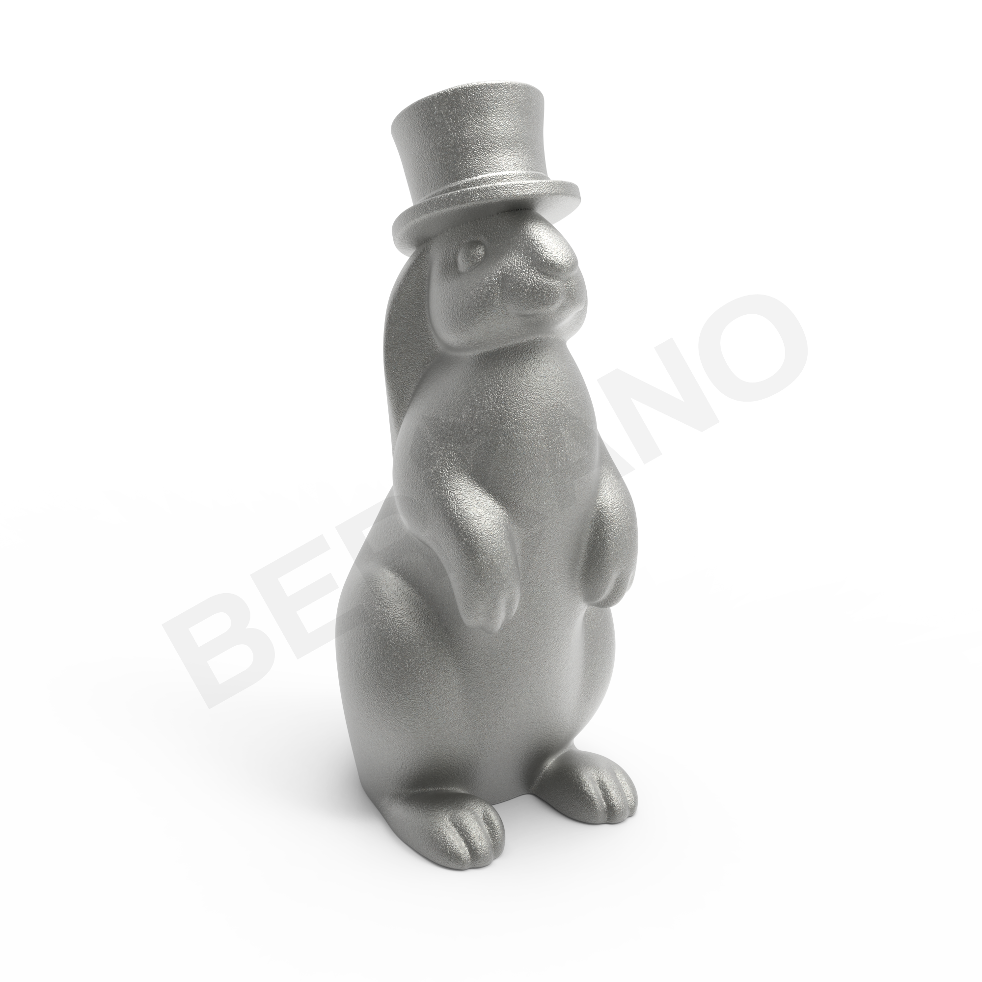 EDDIE TOY - Игривый и харизматичный персонаж новогодней коллекции - белый заяц, стоящий в вертикальной позе, в элегантной высокой шляпе-цилиндре, которая сразу задаёт праздничное и чуть сказочное настроение. Фигура выполнена из прочного белого пластика с мягкой, округлой формой. Тело вытянутое, с аккуратными лапками, слегка прижатыми к груди. Уши длинные, одно из них спадает вдоль головы - создавая живой и доброжелательный образ. Лицо зайца - простое, с доброй полуулыбкой и круглыми глазками, что делает его дружелюбным.