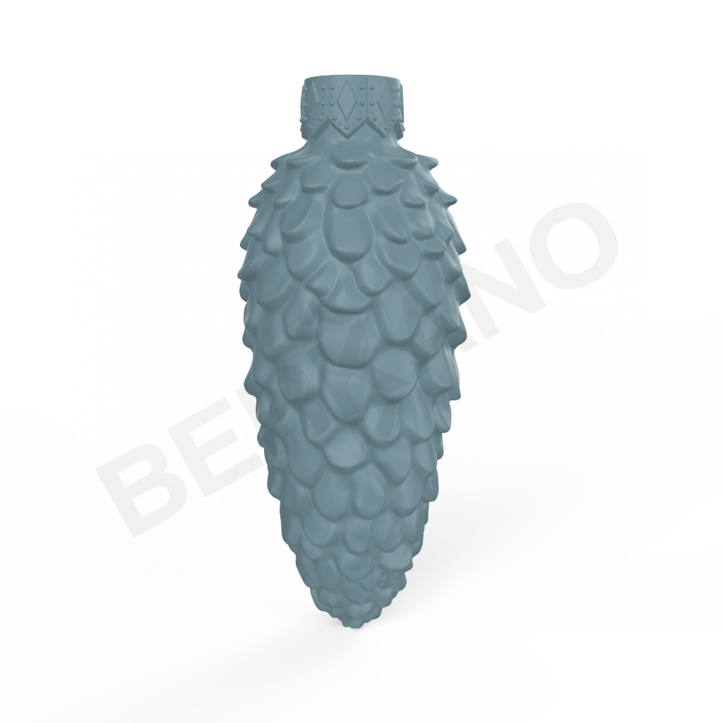 NEEDLS - Фигура с вытянутым силуэтом классической еловой шишки. Чешуйки выполнены с подчёркнутой геометрией: каждая - объёмная, треугольной формы, чередуются слоями. Верх - заострённый, низ расширен. Игра света между слоями создаёт иллюзию глубины и естественного тени. Рельефная фактура придаёт объём и подчёркивает природный мотив.