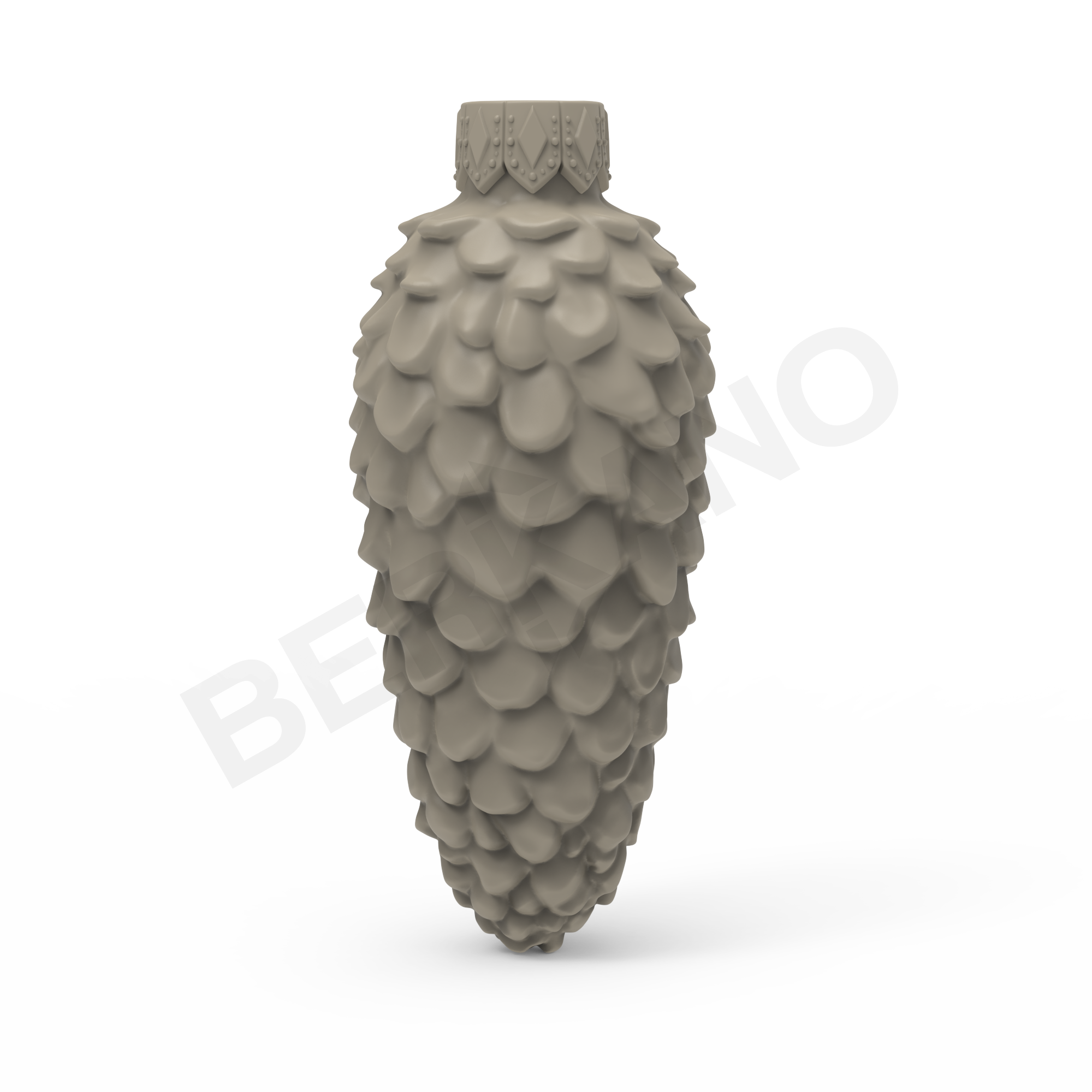 NEEDLS - Фигура с вытянутым силуэтом классической еловой шишки. Чешуйки выполнены с подчёркнутой геометрией: каждая - объёмная, треугольной формы, чередуются слоями. Верх - заострённый, низ расширен. Игра света между слоями создаёт иллюзию глубины и естественного тени. Рельефная фактура придаёт объём и подчёркивает природный мотив.