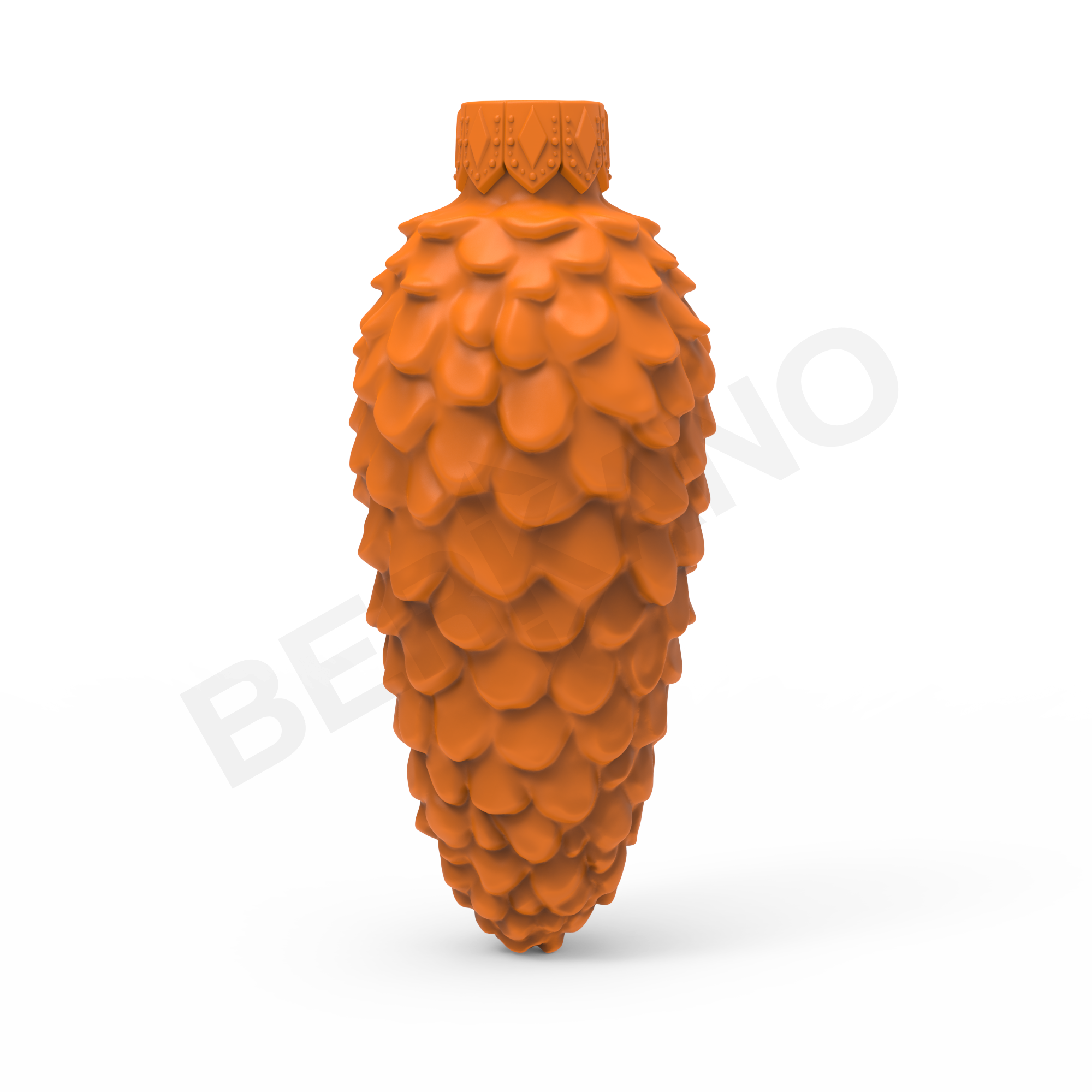 NEEDLS - Фигура с вытянутым силуэтом классической еловой шишки. Чешуйки выполнены с подчёркнутой геометрией: каждая - объёмная, треугольной формы, чередуются слоями. Верх - заострённый, низ расширен. Игра света между слоями создаёт иллюзию глубины и естественного тени. Рельефная фактура придаёт объём и подчёркивает природный мотив.