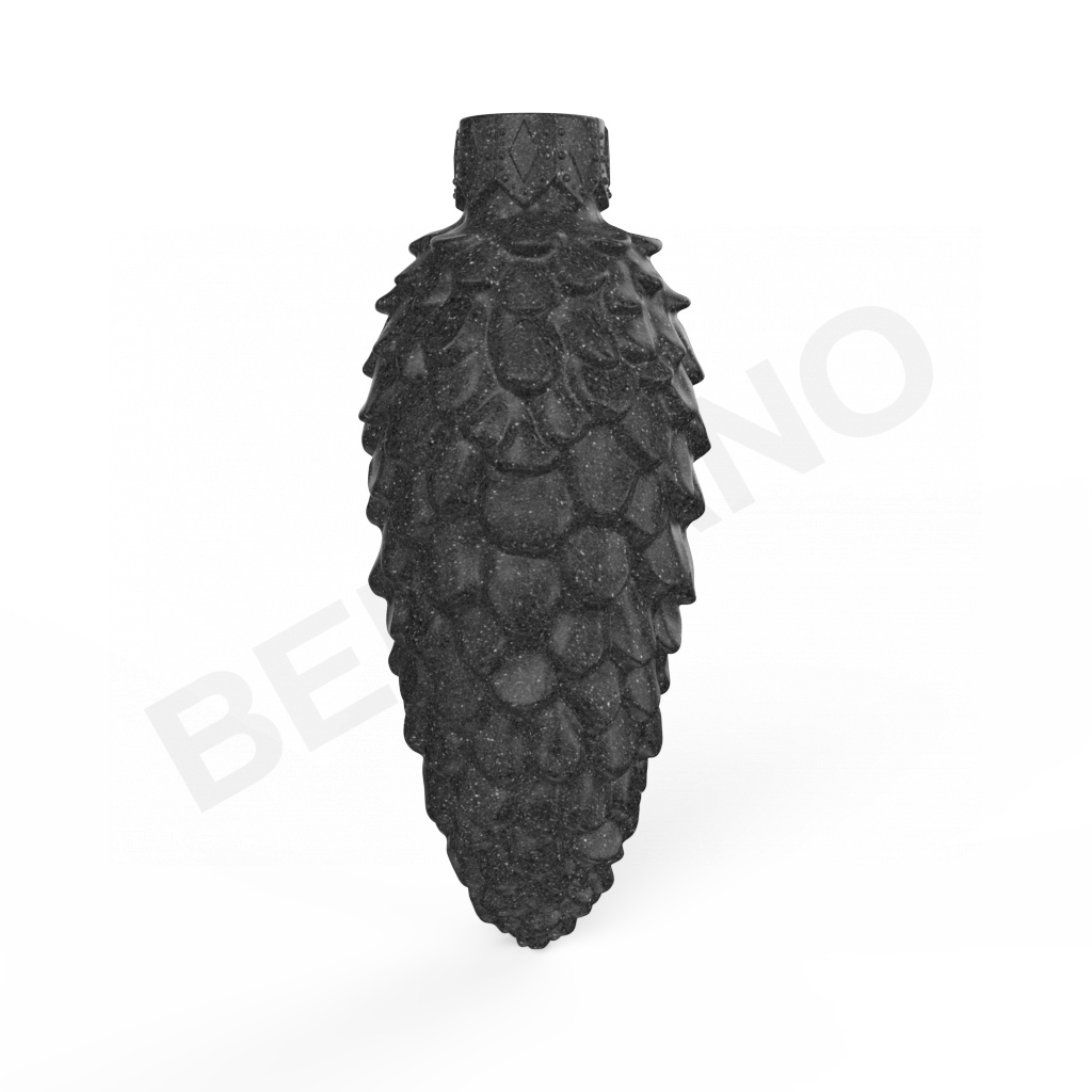 NEEDLS - Фигура с вытянутым силуэтом классической еловой шишки. Чешуйки выполнены с подчёркнутой геометрией: каждая - объёмная, треугольной формы, чередуются слоями. Верх - заострённый, низ расширен. Игра света между слоями создаёт иллюзию глубины и естественного тени. Рельефная фактура придаёт объём и подчёркивает природный мотив.