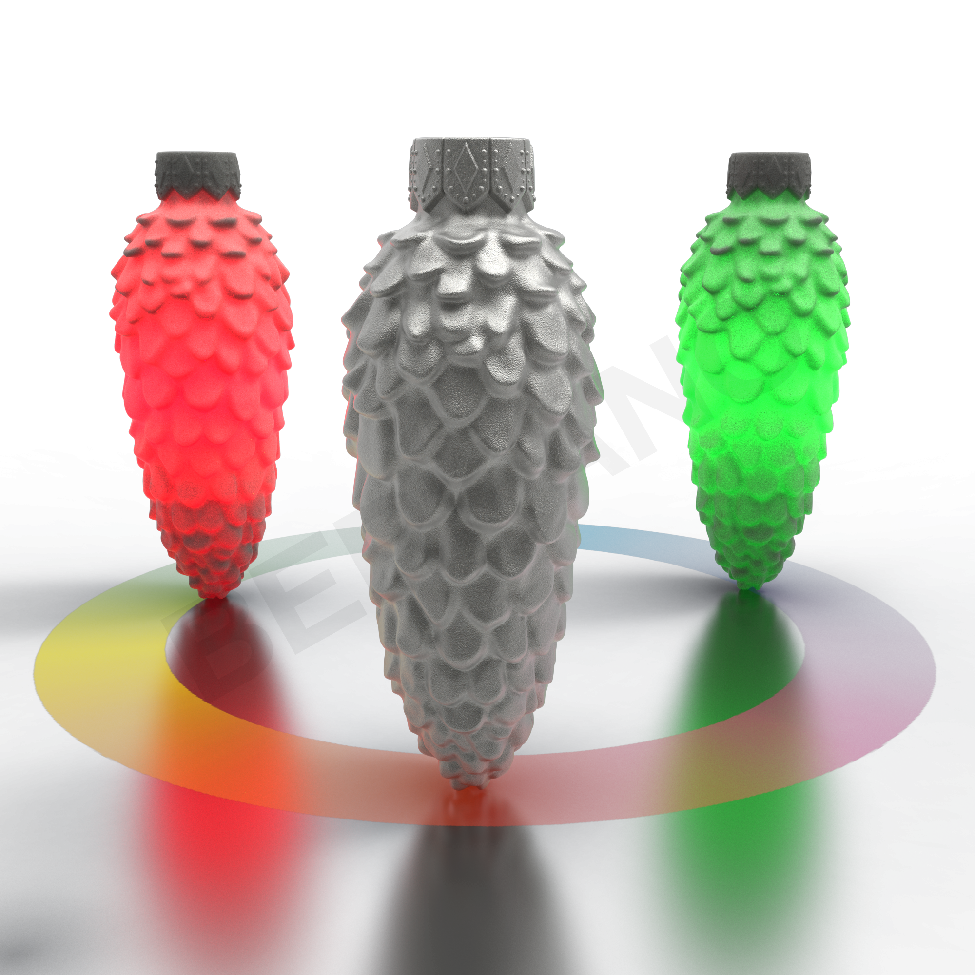 NEEDLS - Фигура с вытянутым силуэтом классической еловой шишки. Чешуйки выполнены с подчёркнутой геометрией: каждая - объёмная, треугольной формы, чередуются слоями. Верх - заострённый, низ расширен. Игра света между слоями создаёт иллюзию глубины и естественного тени. Рельефная фактура придаёт объём и подчёркивает природный мотив.