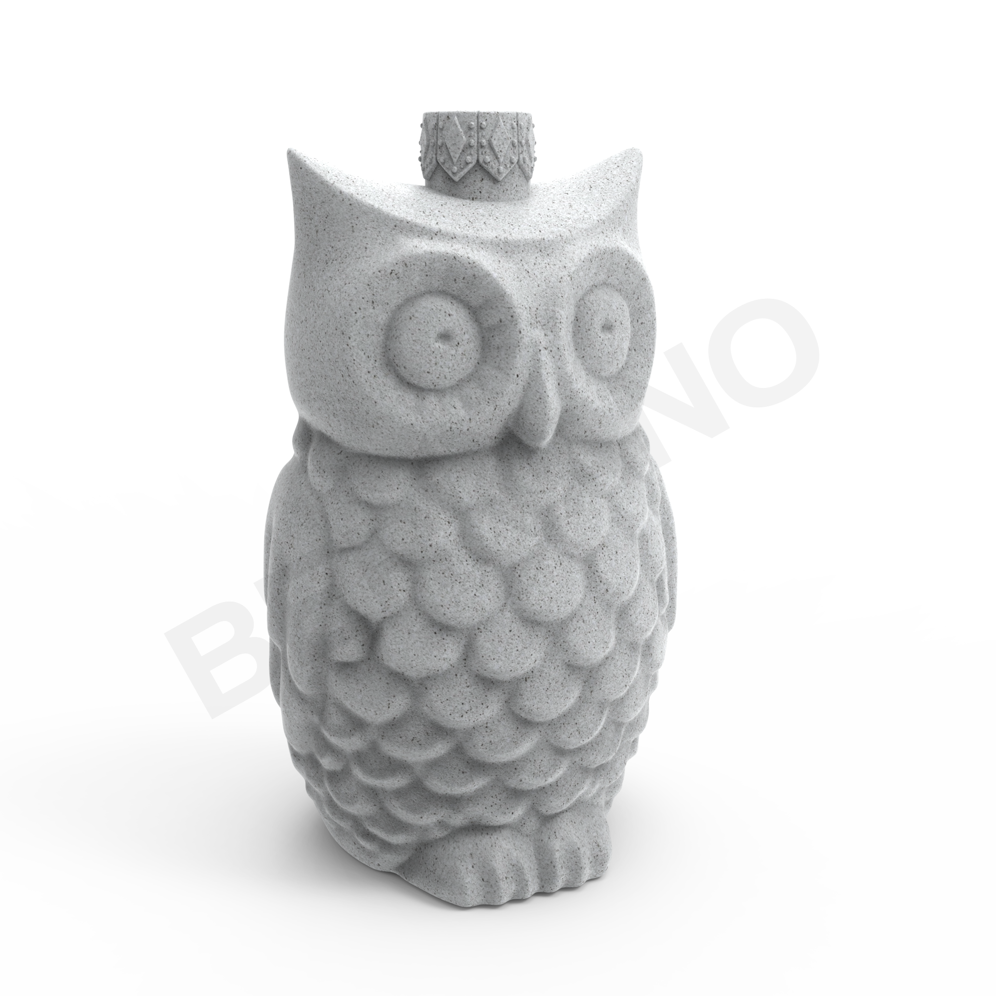 OOLIN - Сова размером 22×21×37 см. Это образ тишины, наблюдения и зимнего волшебства, воплощает в себе баланс природы и архитектуры: чёткие контуры, округлая форма и выразительная символика ночной птицы. Корпус совы - цельный, обтекаемый, напоминает скульптуру. Крупная голова с высоко посаженными глазами - создаётся ощущение, что сова внимательно наблюдает за происходящим. Большие круглые глаза с углублёнными ободками подчёркнуты рельефом, клюв маленький и аккуратный, “врезан” в центр. Крылья выполнены в виде сглаженных боковых линий, прилегающих к телу. Туловище равномерно покрыто узорчатым перьевым рельефом - геометричный, но мягкий, как стилизованная резьба по дереву.