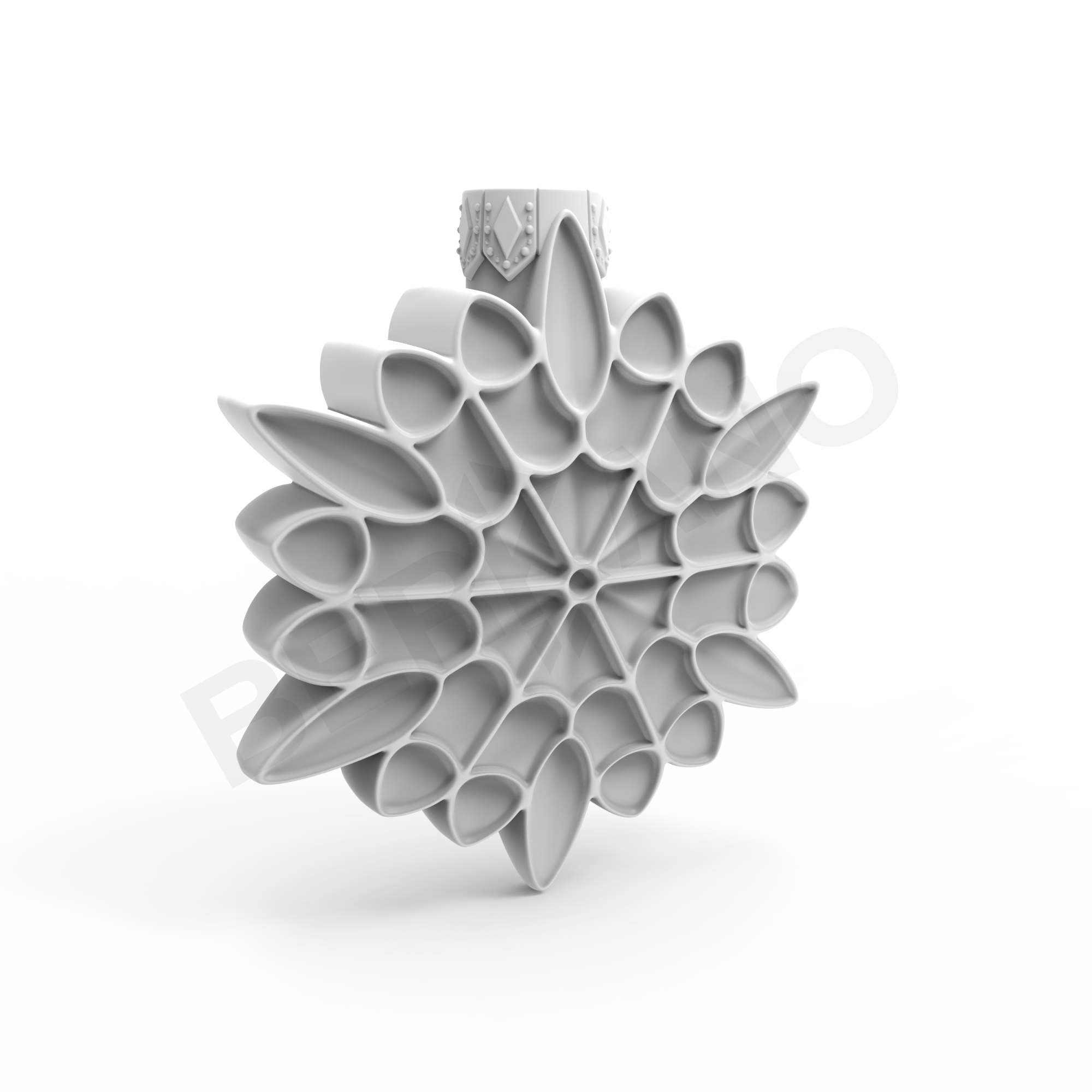 SNOWFLAKE - фигура в форме снежинки, в которой классическая зимняя символика переосмыслена через современный геометричный дизайн. В центре - шестиконечная звезда, от которой расходятся лучи, образующие ритмичную структуру из каплевидных лепестков. Эти лепестки чередуются в двух уровнях: крупные — на внешнем круге, мелкие — во внутреннем, формируя визуально насыщенное и сбалансированное «цветочное» кружево. Контуры каждой детали утолщены и чётко выделены - благодаря этому фигура выглядит не только декоративно, но и скульптурно.