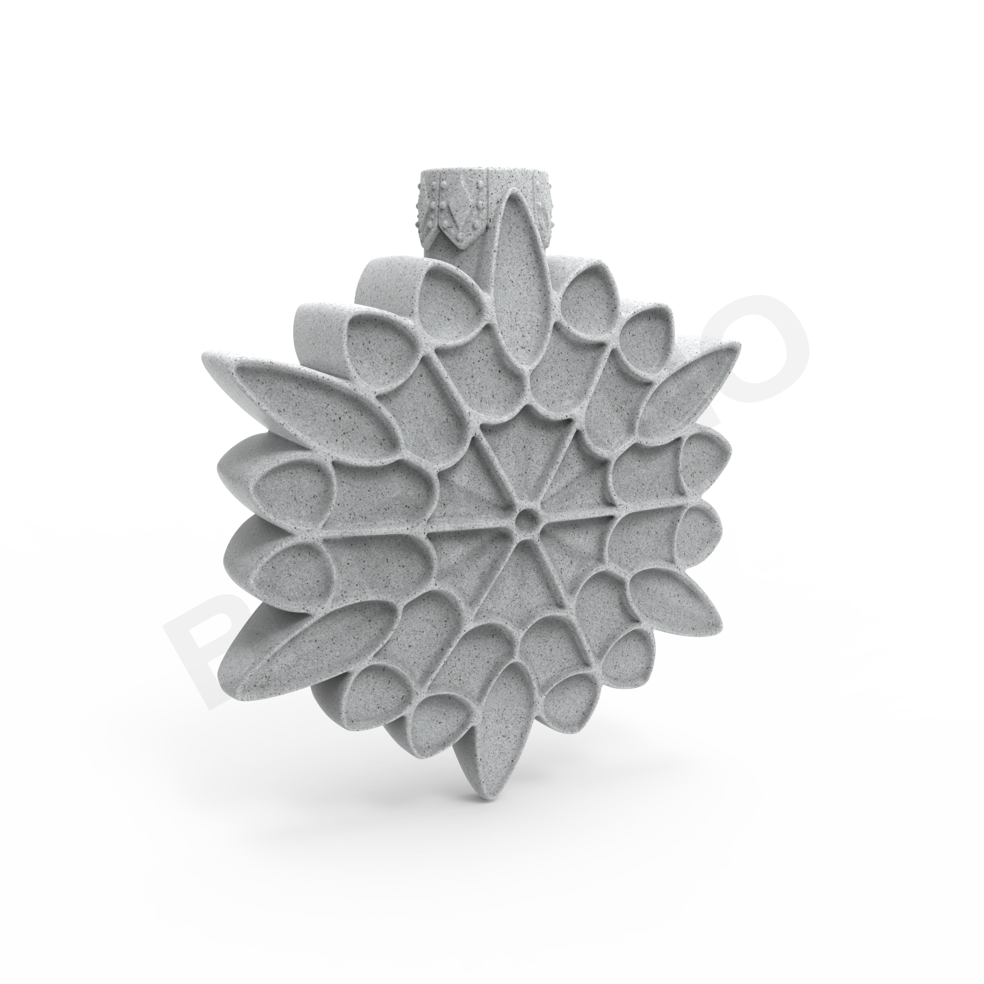 SNOWFLAKE - фигура в форме снежинки, в которой классическая зимняя символика переосмыслена через современный геометричный дизайн. В центре - шестиконечная звезда, от которой расходятся лучи, образующие ритмичную структуру из каплевидных лепестков. Эти лепестки чередуются в двух уровнях: крупные — на внешнем круге, мелкие — во внутреннем, формируя визуально насыщенное и сбалансированное «цветочное» кружево. Контуры каждой детали утолщены и чётко выделены - благодаря этому фигура выглядит не только декоративно, но и скульптурно.