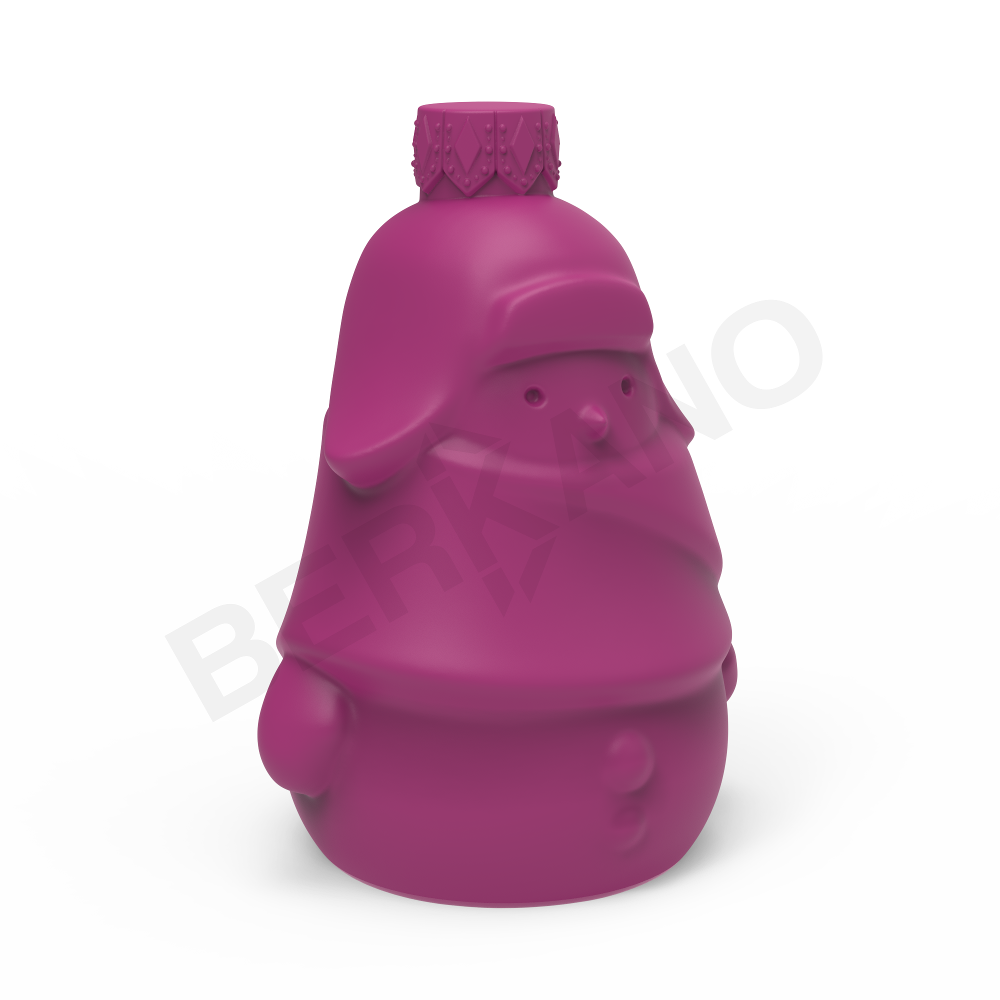 Образ построен на мягких линиях, округлых силуэтах и лаконичном рельефе - это современная трактовка зимнего персонажа, близкая к анимационному стилю. Голова плавно переходит в тело, создавая цельную каплевидную форму. Снеговик носит крупную шапку-ушанку с опущенными «ушами» и широким отворотом - она визуально задаёт настроение: уютное, немного ностальгическое. На корпусе прорисованы объёмный шарф, плотно обёрнутый вокруг фигуры, и две рельефные пуговицы на животе. Ручки отведены по бокам, придавая игрушке симметрию.