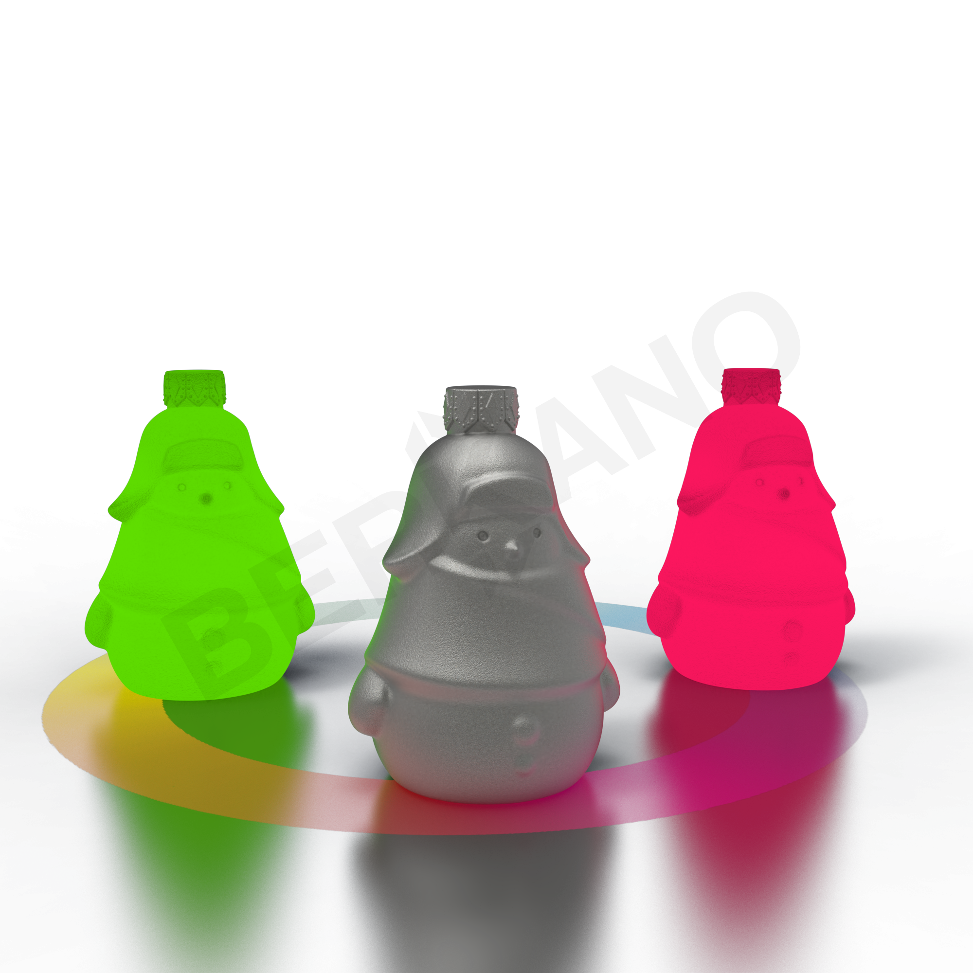 Образ построен на мягких линиях, округлых силуэтах и лаконичном рельефе - это современная трактовка зимнего персонажа, близкая к анимационному стилю. Голова плавно переходит в тело, создавая цельную каплевидную форму. Снеговик носит крупную шапку-ушанку с опущенными «ушами» и широким отворотом - она визуально задаёт настроение: уютное, немного ностальгическое. На корпусе прорисованы объёмный шарф, плотно обёрнутый вокруг фигуры, и две рельефные пуговицы на животе. Ручки отведены по бокам, придавая игрушке симметрию.