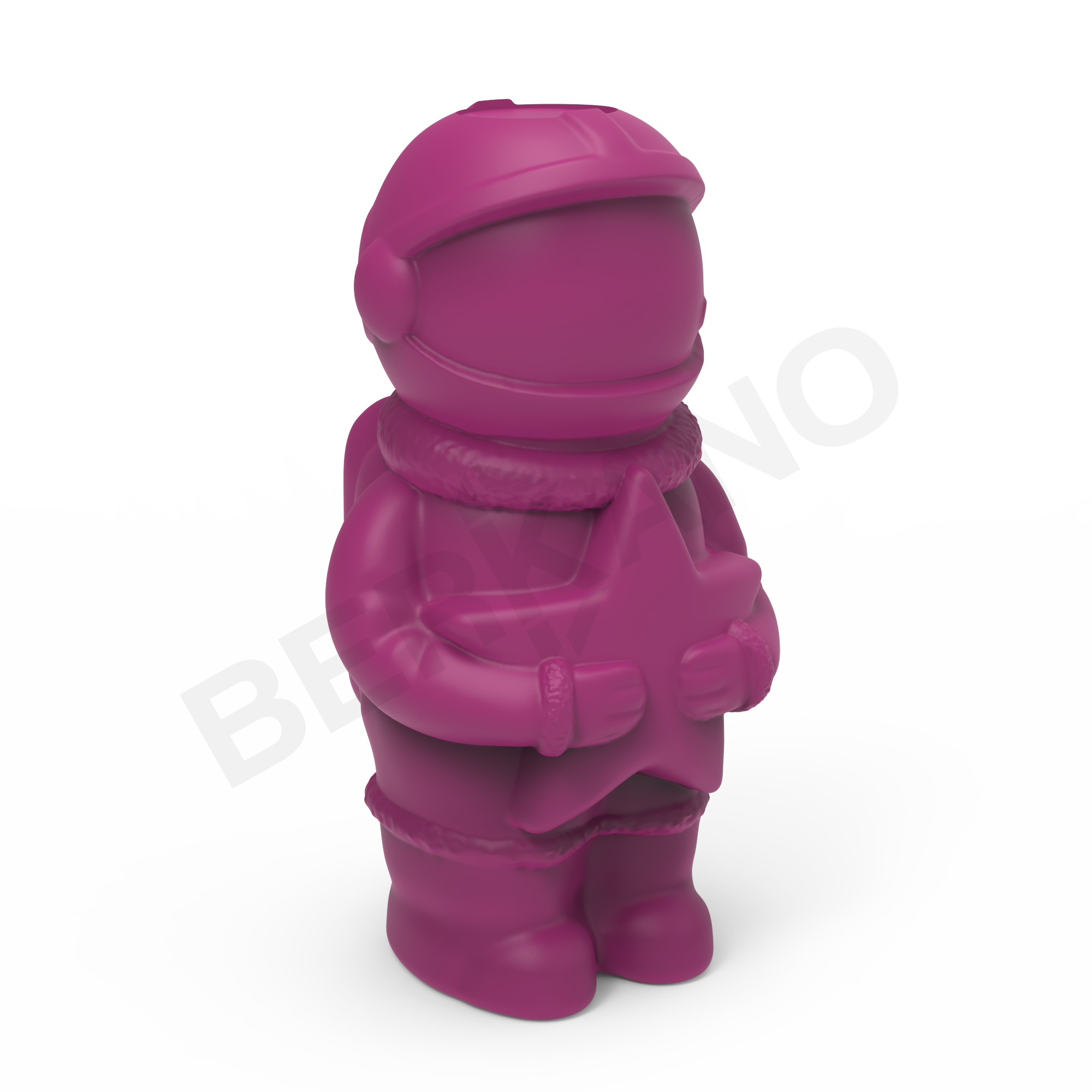 Детализированная форма и шлем создают ассоциации с современным образом исследователя космоса. Фигура с чётко прорисованным скафандром: округлый шлем с гладкой лицевой частью, торс, рельефные шланги и детали костюма. Все линии пластичны, пропорции гармоничны. Особое внимание привлекает деталь: в руках космонавт держит пятиконечную звезду, словно символ мечты, цели или найденного света.
