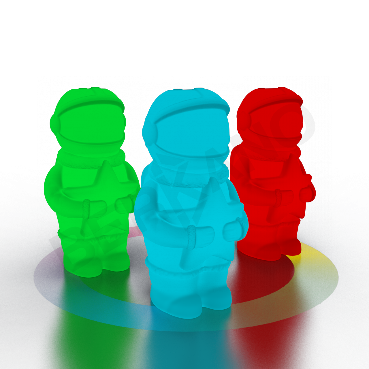 Детализированная форма и шлем создают ассоциации с современным образом исследователя космоса. Фигура с чётко прорисованным скафандром: округлый шлем с гладкой лицевой частью, торс, рельефные шланги и детали костюма. Все линии пластичны, пропорции гармоничны. Особое внимание привлекает деталь: в руках космонавт держит пятиконечную звезду, словно символ мечты, цели или найденного света.