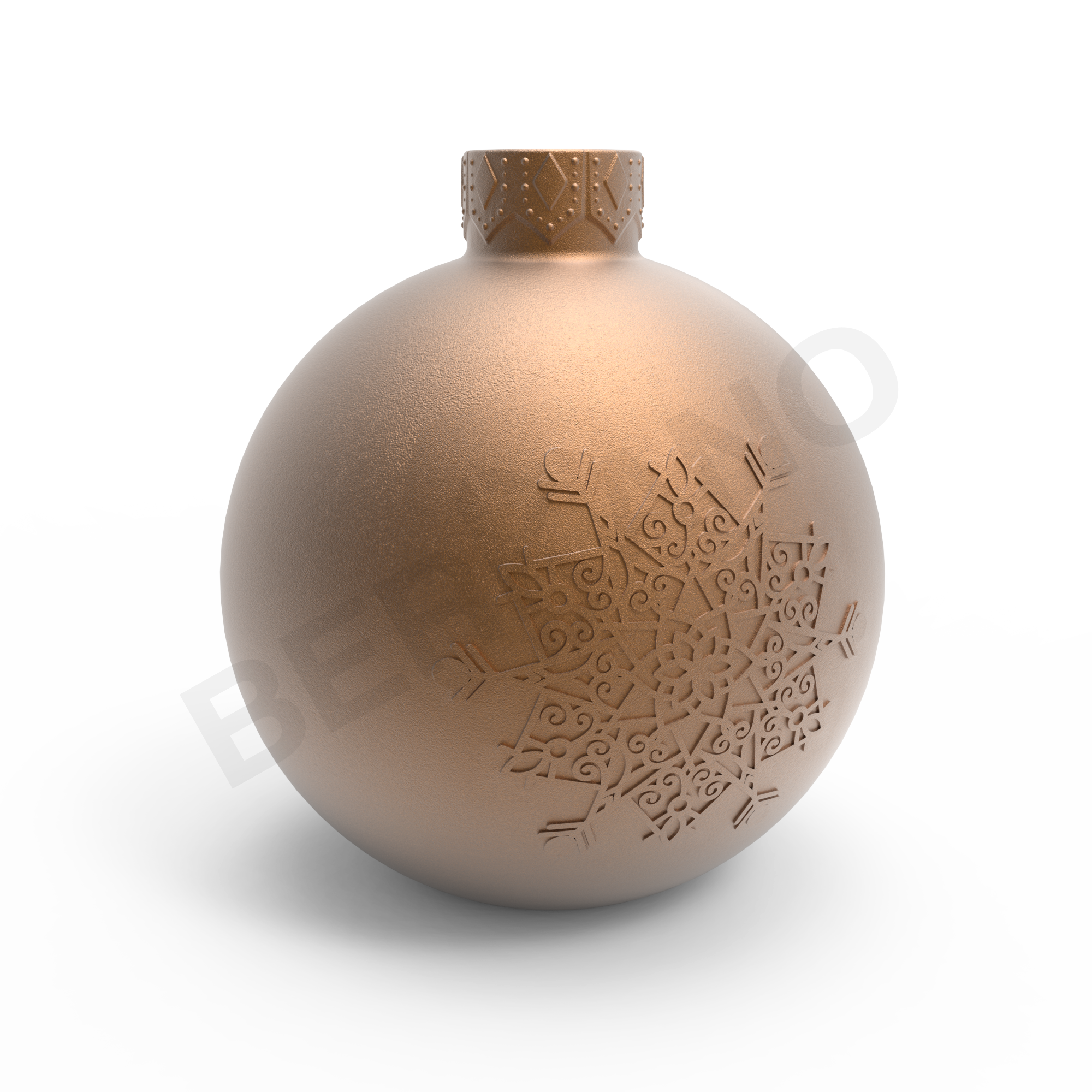Шар диаметром 30 см выполнен из прочного пластика, выдерживает мороз, осадки и ультрафиолет. Украшен рельефной снежинкой на гранях — она подчёркивает зимнюю тематику и добавляет объём.