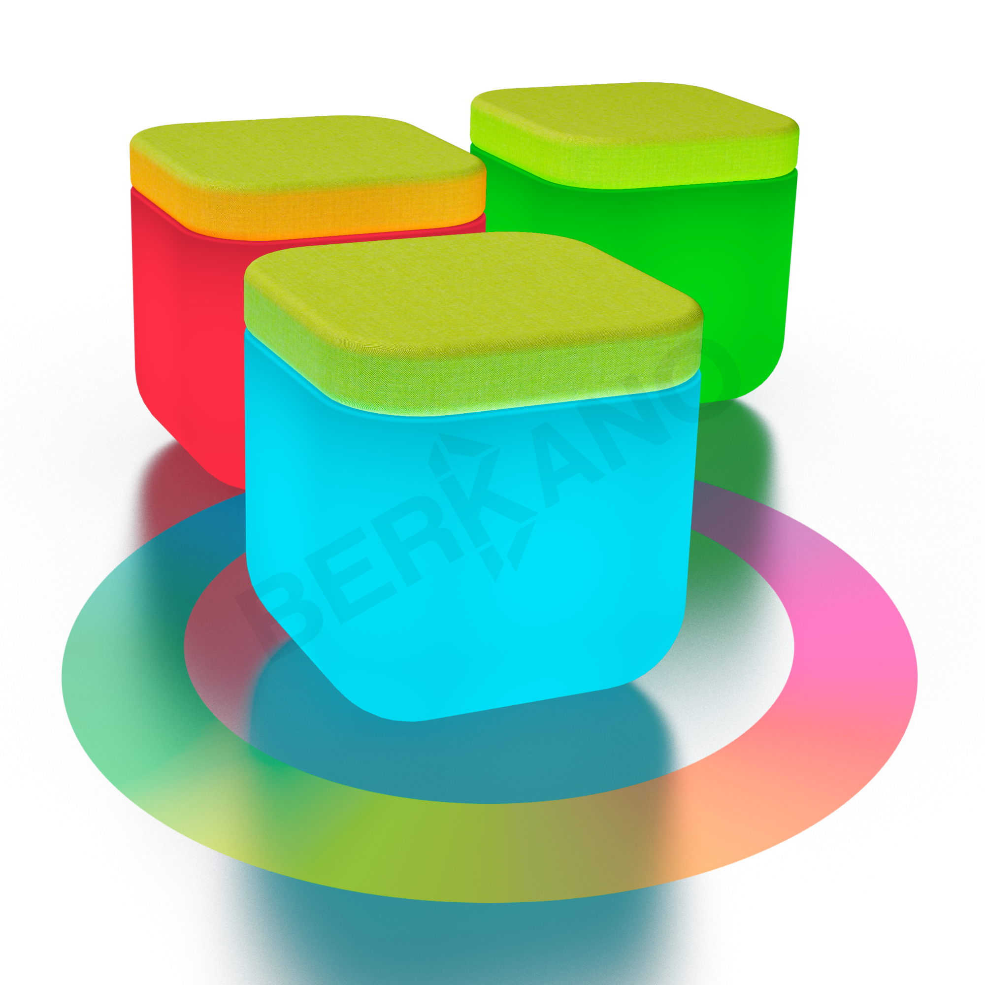 Мебель оснащена встроенной подсветкой. Материал изделий BERKANO пропускает свет, слегка приглушая его. Это нетривиальное техническое решение преобразит ваше пространство в темное время суток и приятно удивит гостей.