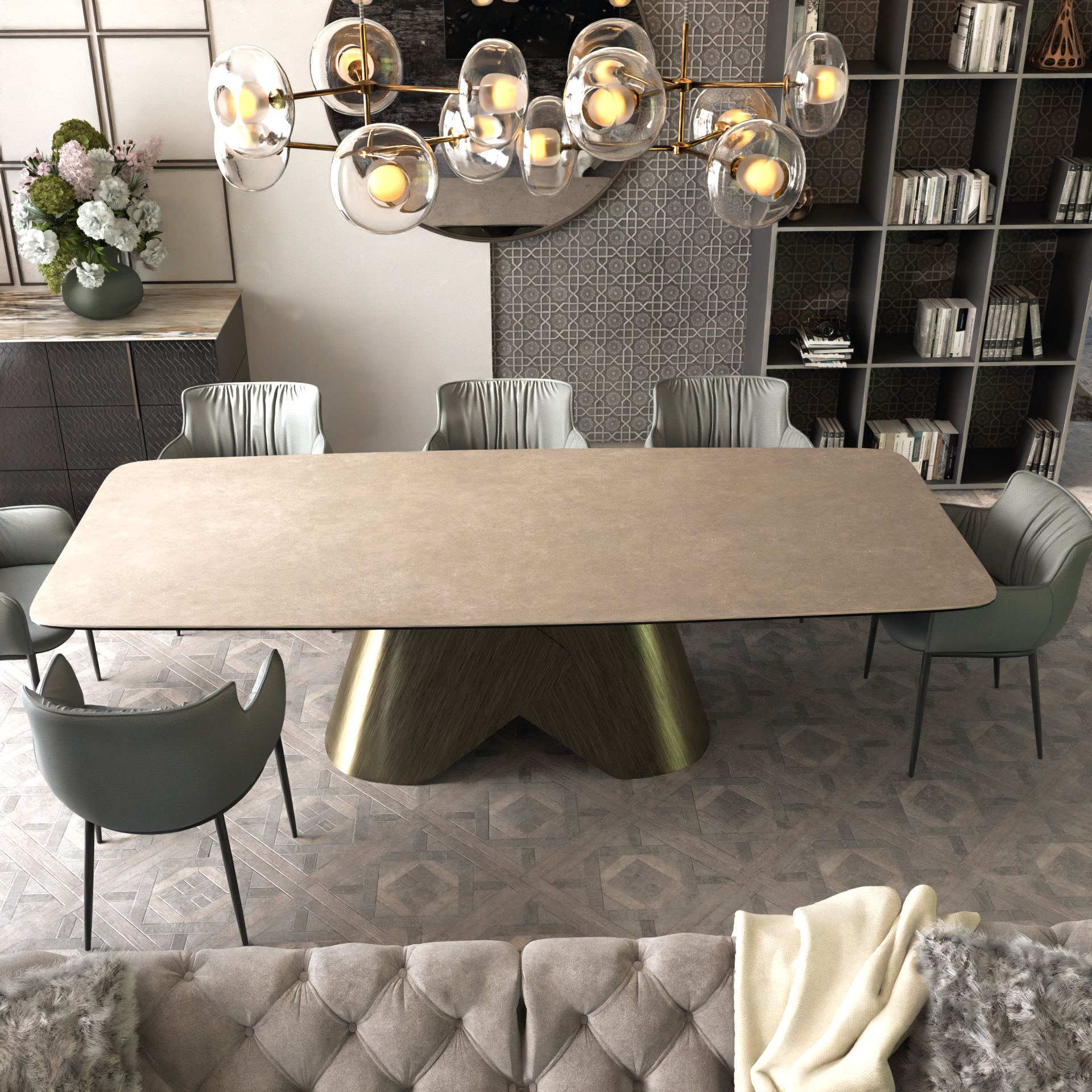 Стол из керамогранита подходит для кухни и столовой с активной ежедневной эксплуатацией, сохраняя внешний вид даже при интенсивном использовании. Металлическое основание формирует характер всей модели. Опора может быть выполнена в технике браширования, а также в других цветах из палитры. Форма основания подчёркивает динамику дизайна и придаёт столу визуальную монументальность без ощущения перегруженности. В основе концепции — итальянский подход к мебели, где материал и конструкция работают как единое целое. Сенатор — это качественная итальянская реплика, адаптированная под реальные условия эксплуатации в России. Дизайнерский обеденный стол Сенатор органично вписывается в современные интерьеры, минимализм и пространства с акцентной архитектурой. Стол с керамогранитной столешницей становится выразительным центром кухни или столовой, подчёркивая характер интерьера.