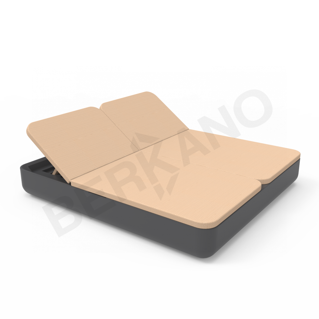 Двойной шезлонг экономит пространство, позволяя разместить  на ограниченной площади больше гостей по сравнению с одноместными лежаками. Модель имеет привычные габариты двуспальной кровати 2 м на 1 м 80 см. Наклон спинок регулируется, а основание находится на оптимальной высоте от пола – 275 мм, что дает возможность не только лежать, но и сидеть на шезлонге.
