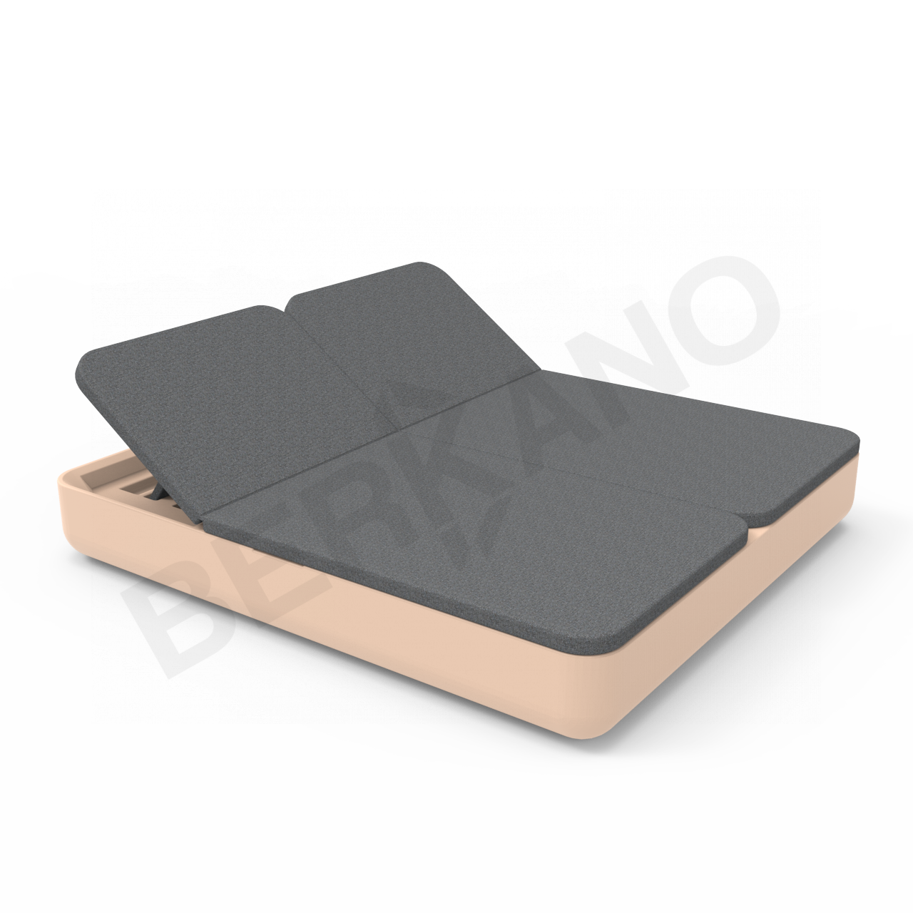 Двойной шезлонг экономит пространство, позволяя разместить  на ограниченной площади больше гостей по сравнению с одноместными лежаками. Модель имеет привычные габариты двуспальной кровати 2 м на 1 м 80 см. Наклон спинок регулируется, а основание находится на оптимальной высоте от пола – 275 мм, что дает возможность не только лежать, но и сидеть на шезлонге.