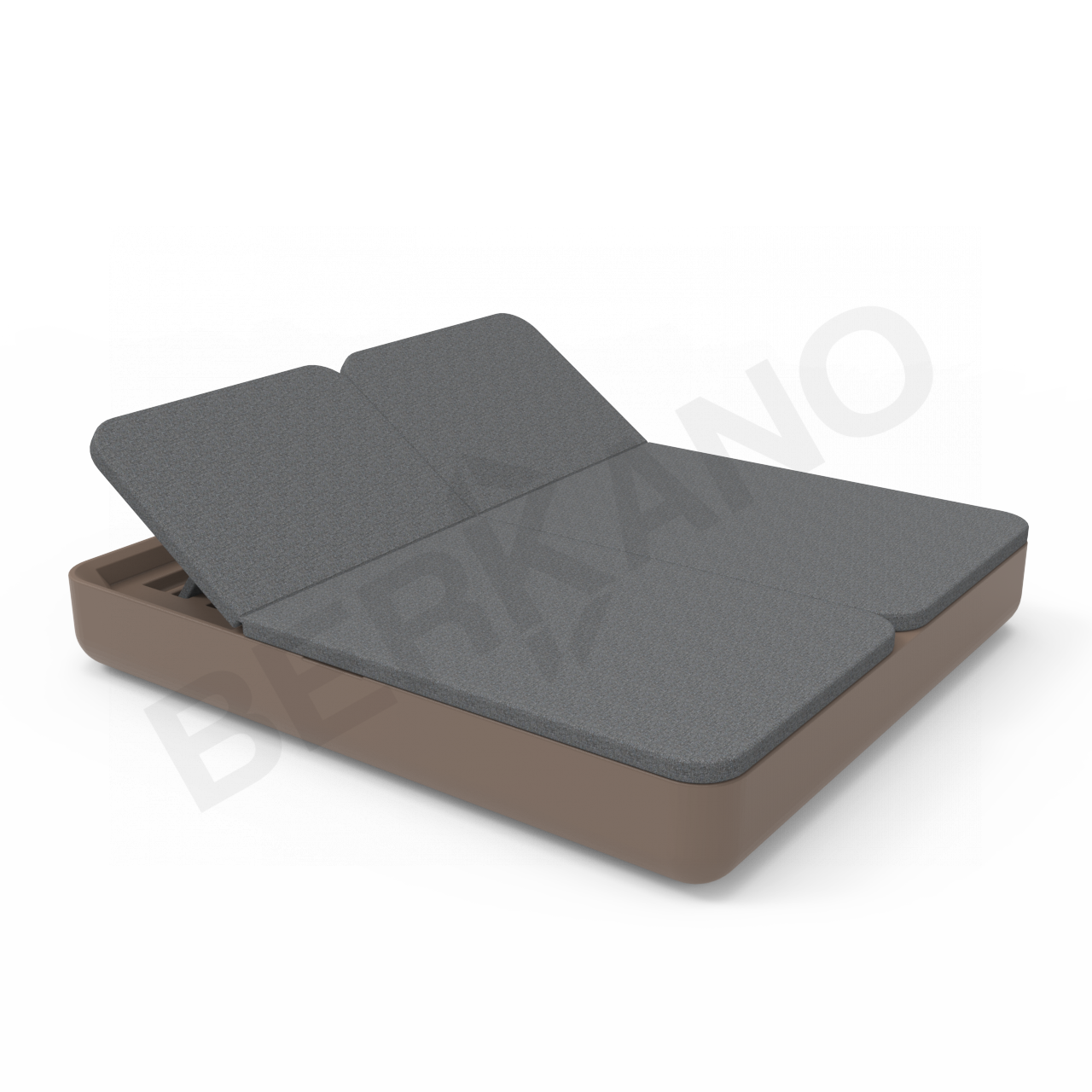 Двойной шезлонг экономит пространство, позволяя разместить  на ограниченной площади больше гостей по сравнению с одноместными лежаками. Модель имеет привычные габариты двуспальной кровати 2 м на 1 м 80 см. Наклон спинок регулируется, а основание находится на оптимальной высоте от пола – 275 мм, что дает возможность не только лежать, но и сидеть на шезлонге.