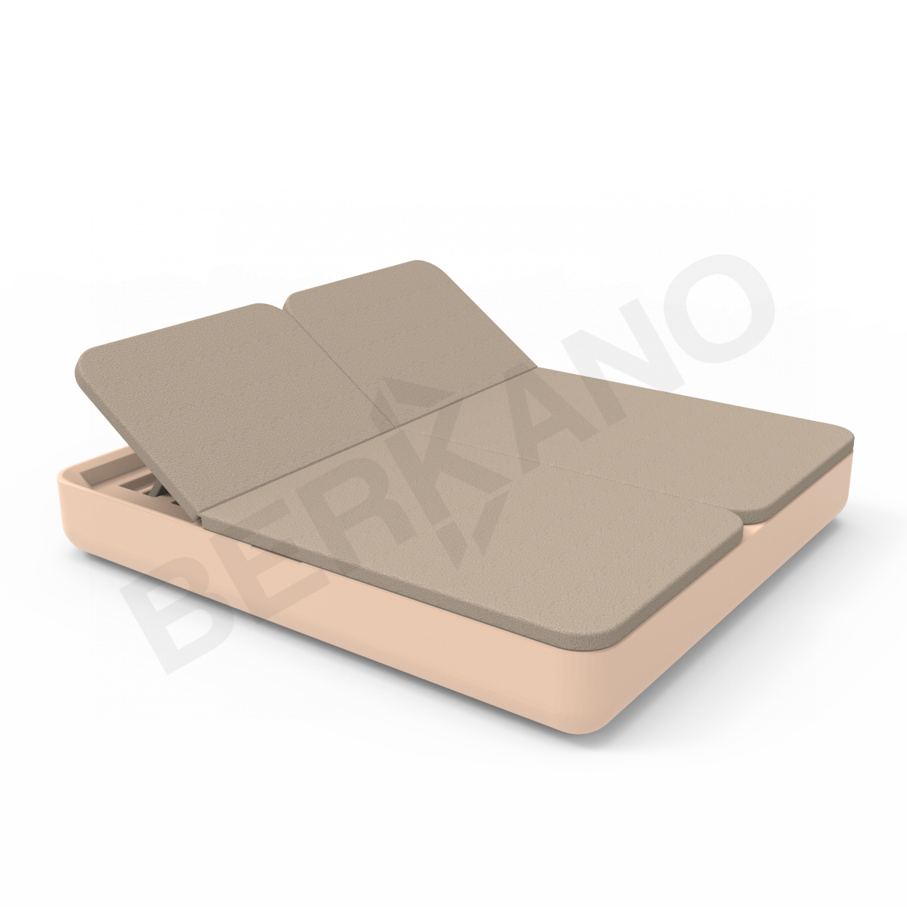 Двойной шезлонг экономит пространство, позволяя разместить  на ограниченной площади больше гостей по сравнению с одноместными лежаками. Модель имеет привычные габариты двуспальной кровати 2 м на 1 м 80 см. Наклон спинок регулируется, а основание находится на оптимальной высоте от пола – 275 мм, что дает возможность не только лежать, но и сидеть на шезлонге.
