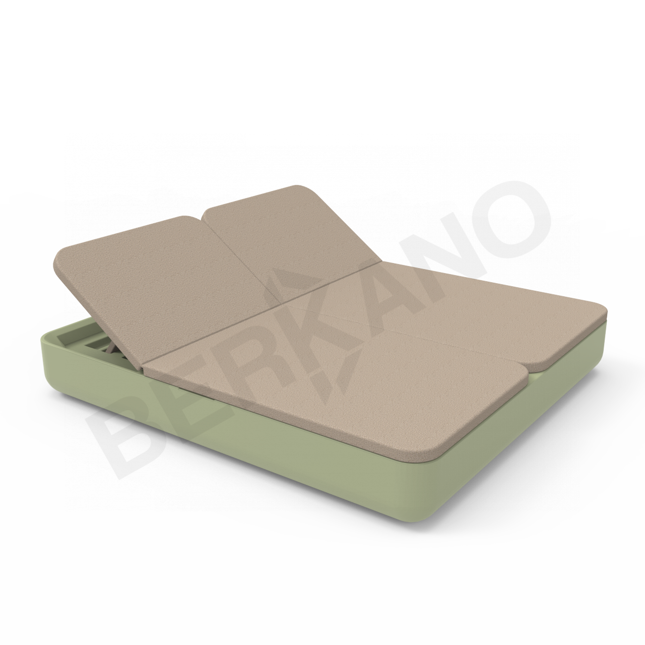 Двойной шезлонг экономит пространство, позволяя разместить  на ограниченной площади больше гостей по сравнению с одноместными лежаками. Модель имеет привычные габариты двуспальной кровати 2 м на 1 м 80 см. Наклон спинок регулируется, а основание находится на оптимальной высоте от пола – 275 мм, что дает возможность не только лежать, но и сидеть на шезлонге.