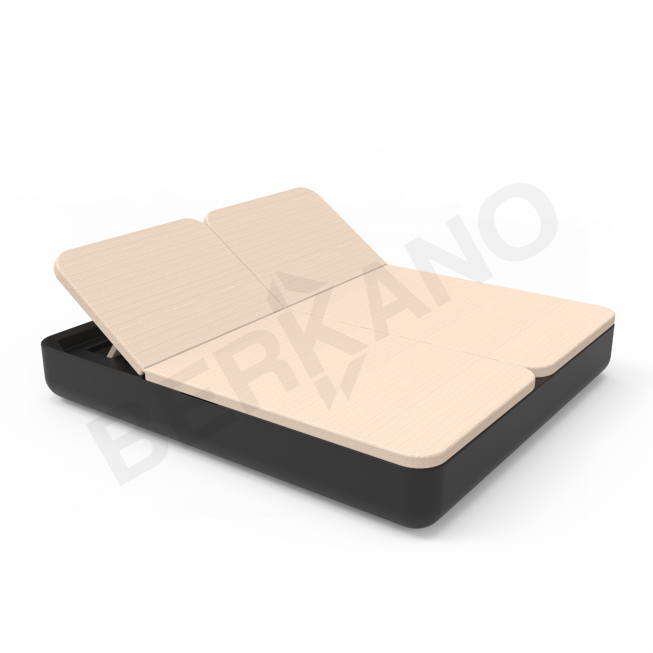 Двойной шезлонг экономит пространство, позволяя разместить  на ограниченной площади больше гостей по сравнению с одноместными лежаками. Модель имеет привычные габариты двуспальной кровати 2 м на 1 м 80 см. Наклон спинок регулируется, а основание находится на оптимальной высоте от пола – 275 мм, что дает возможность не только лежать, но и сидеть на шезлонге.