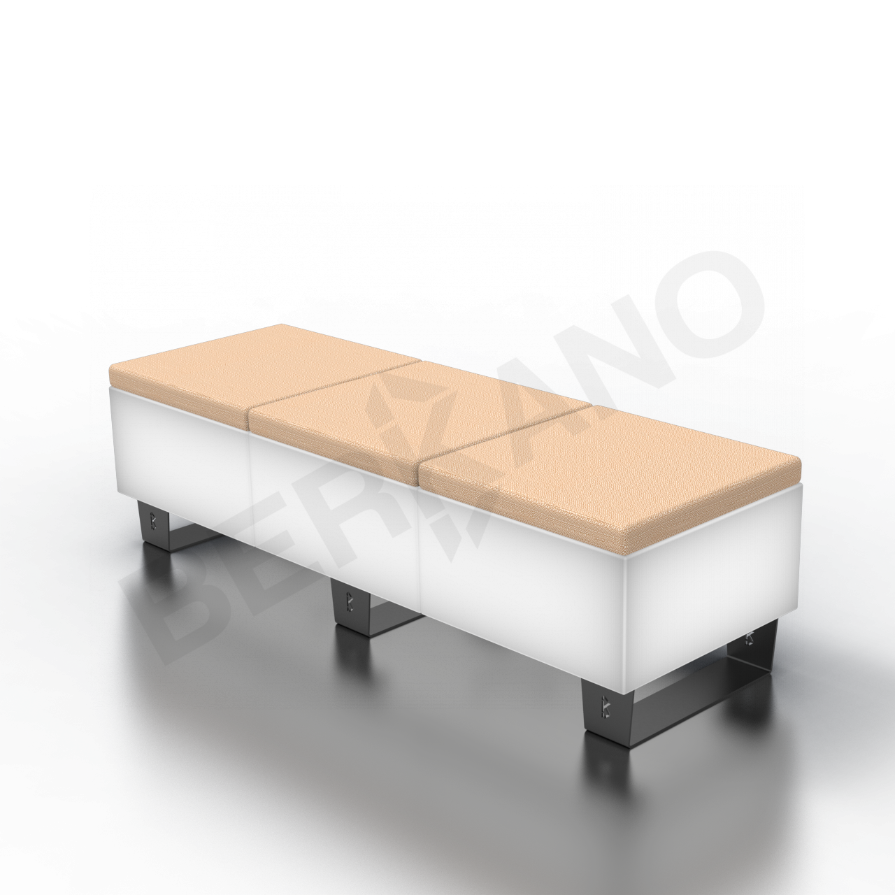 Brick совмещает в себе предмет мебели с опцией подсветки: внутри скамейки можно разместить плафон, который защитит лампу от влаги и внешних воздействий. Широкие металлические ножки обеспечивают устойчивость изделия, что особенно важно при установке на газонах. Для удобной посадки предусмотрена оптимальная высота скамьи.