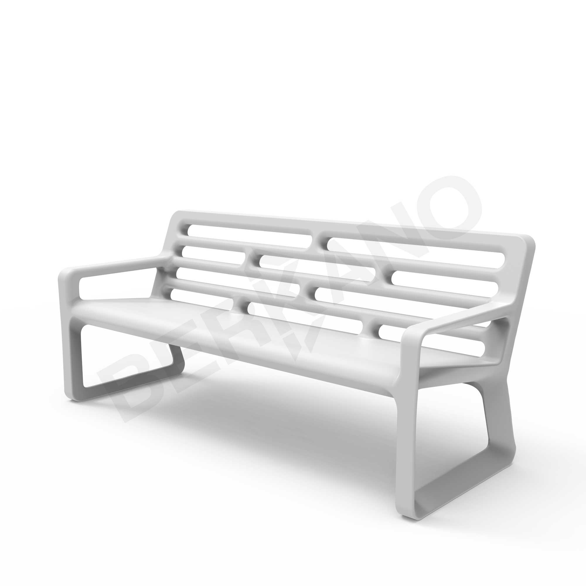 Скамья выполнена из прочного 3D пластика с низкой пористостью, что делает её устойчивой к влаге, перепадам температур и ультрафиолету. Материал не требует сложного ухода и сохраняет презентабельный вид на протяжении многих сезонов.