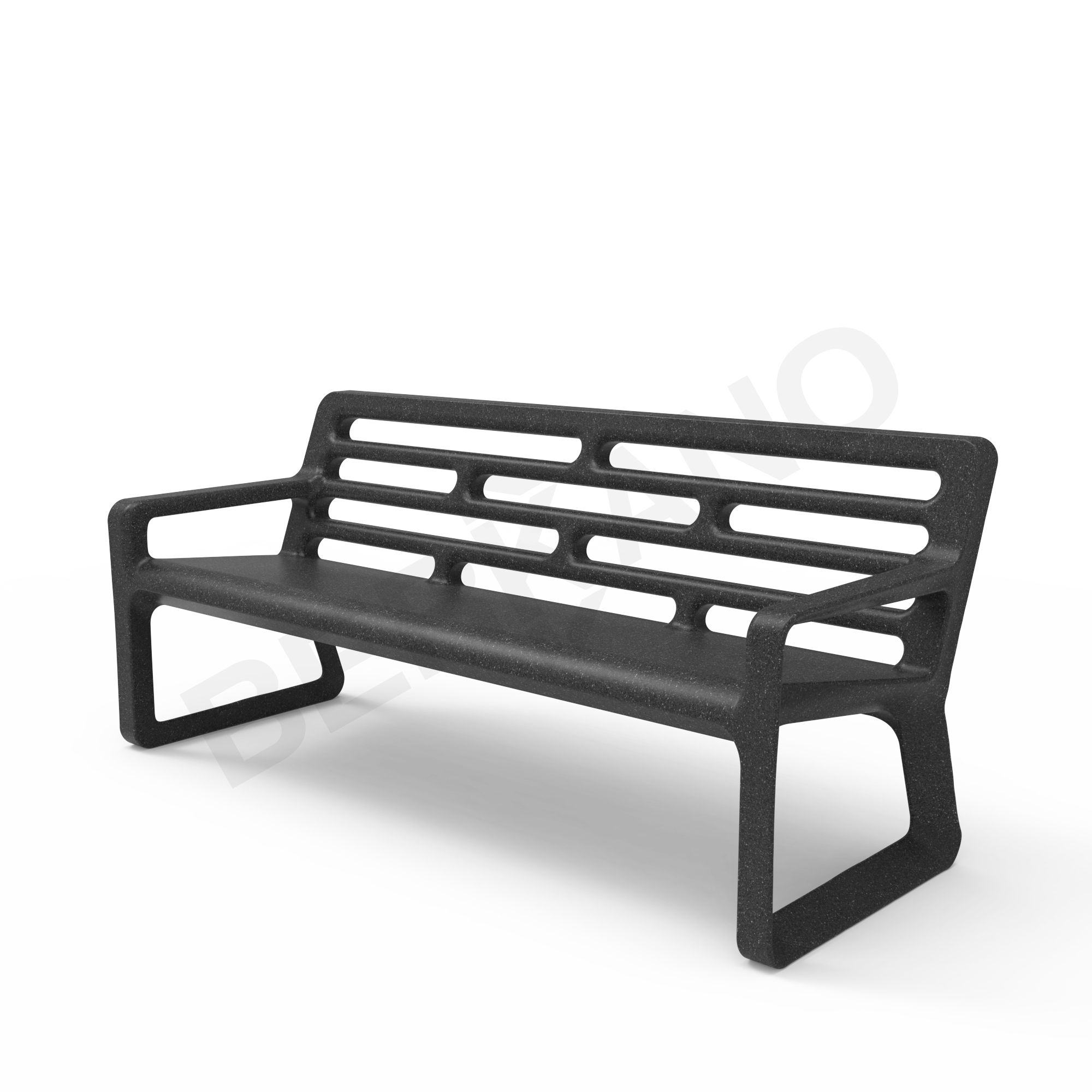 Скамья выполнена из прочного 3D пластика с низкой пористостью, что делает её устойчивой к влаге, перепадам температур и ультрафиолету. Материал не требует сложного ухода и сохраняет презентабельный вид на протяжении многих сезонов.