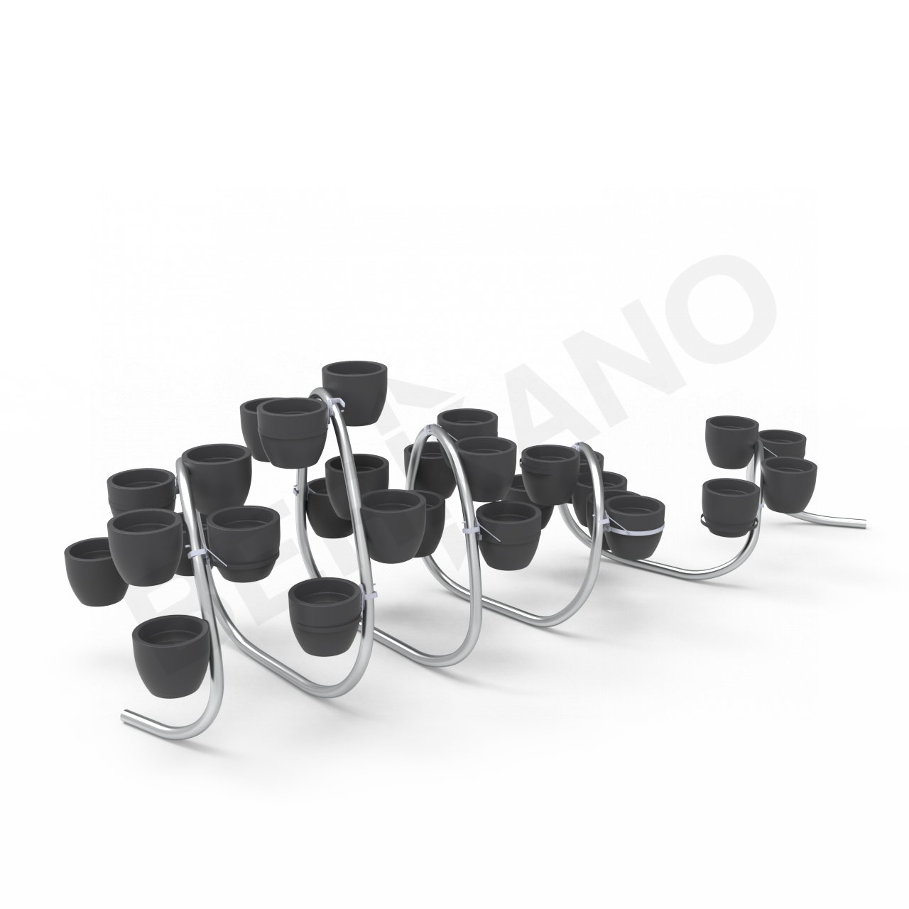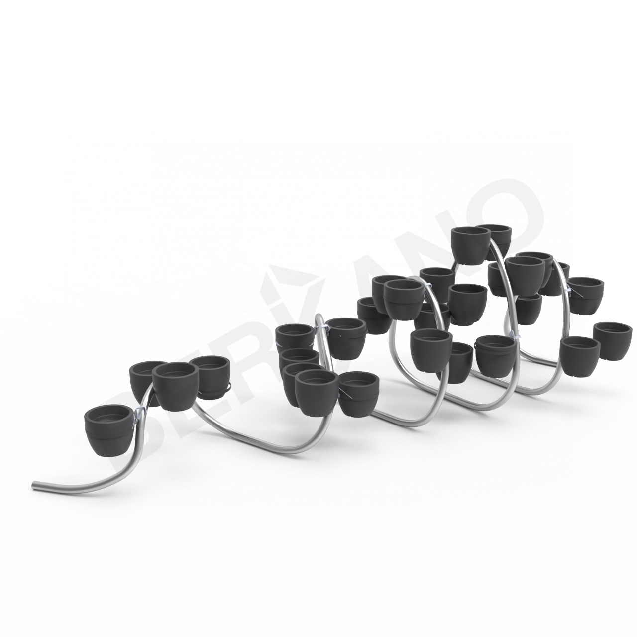 Каркас СтЗ, порошковая окраска зеркальный хром, d76 стенки 4мм, вазоны 30шт, из линейного полиэтилена низкой плотности, крепление к каркасу через закладные.