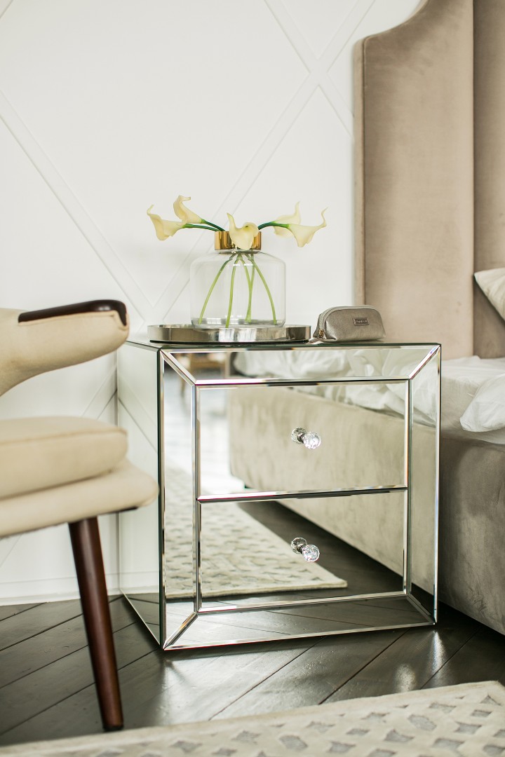 Ее уникальность заключается в том, что каждый элемент оформлен зеркальными панелями с фацетом.